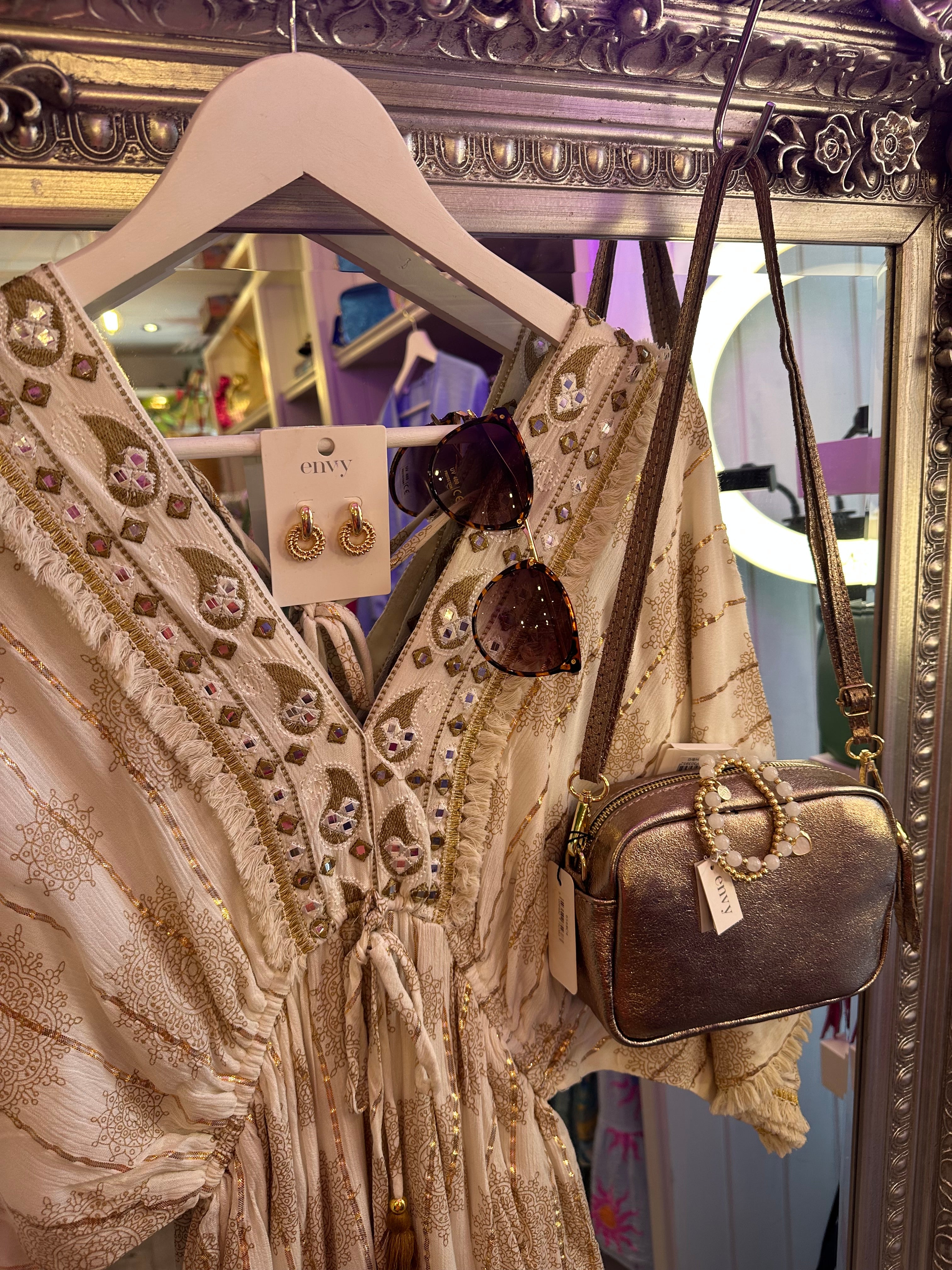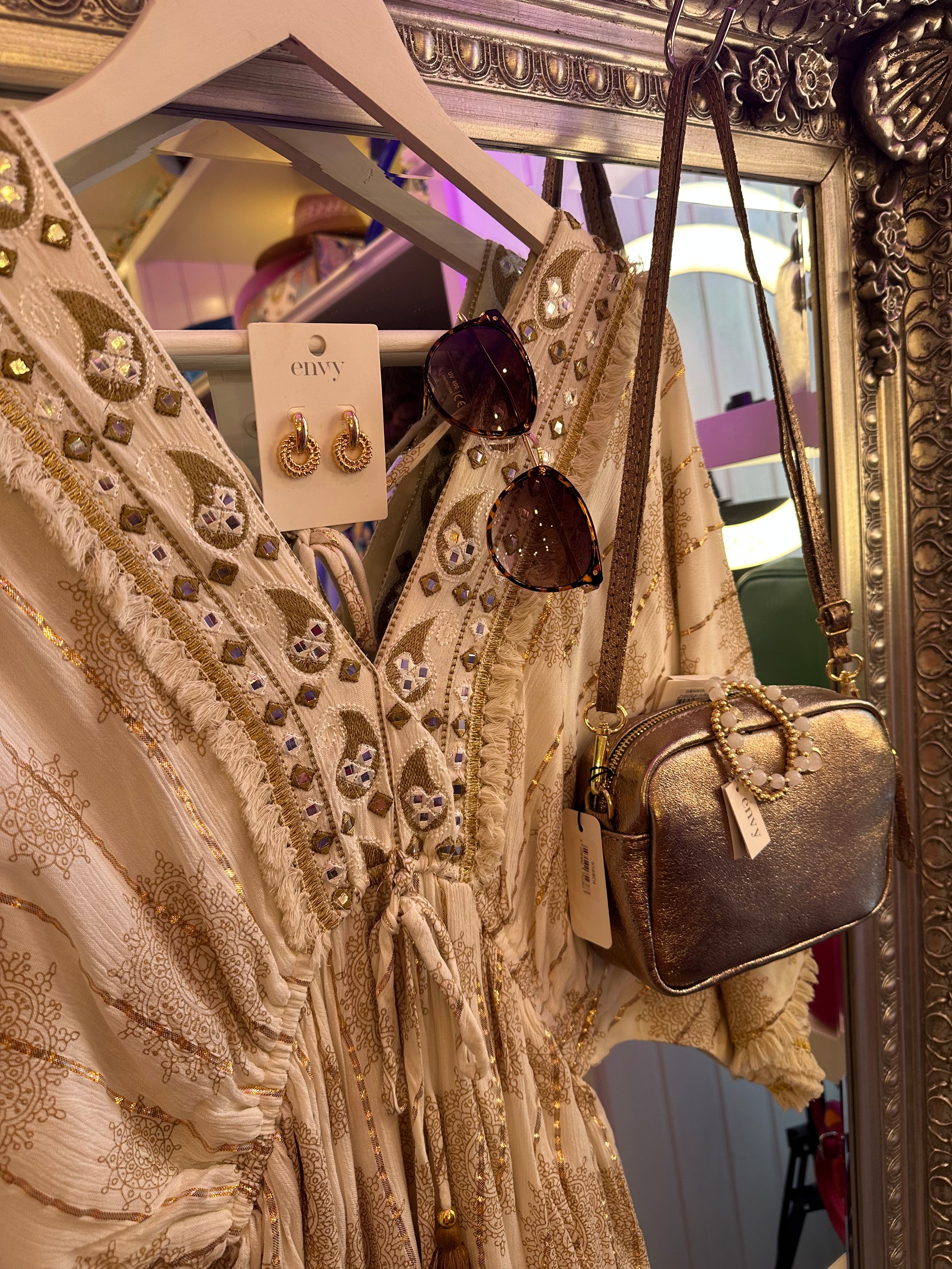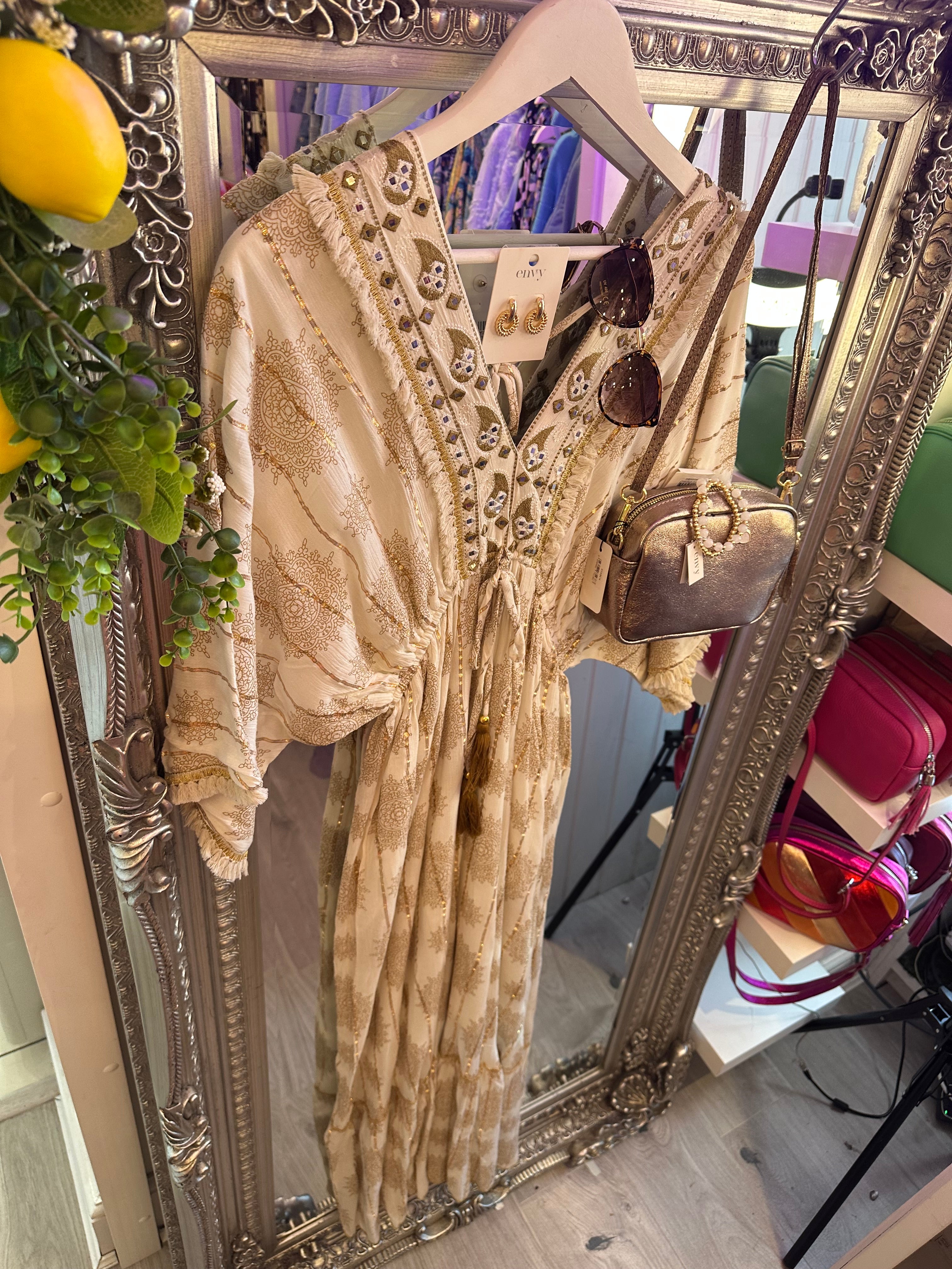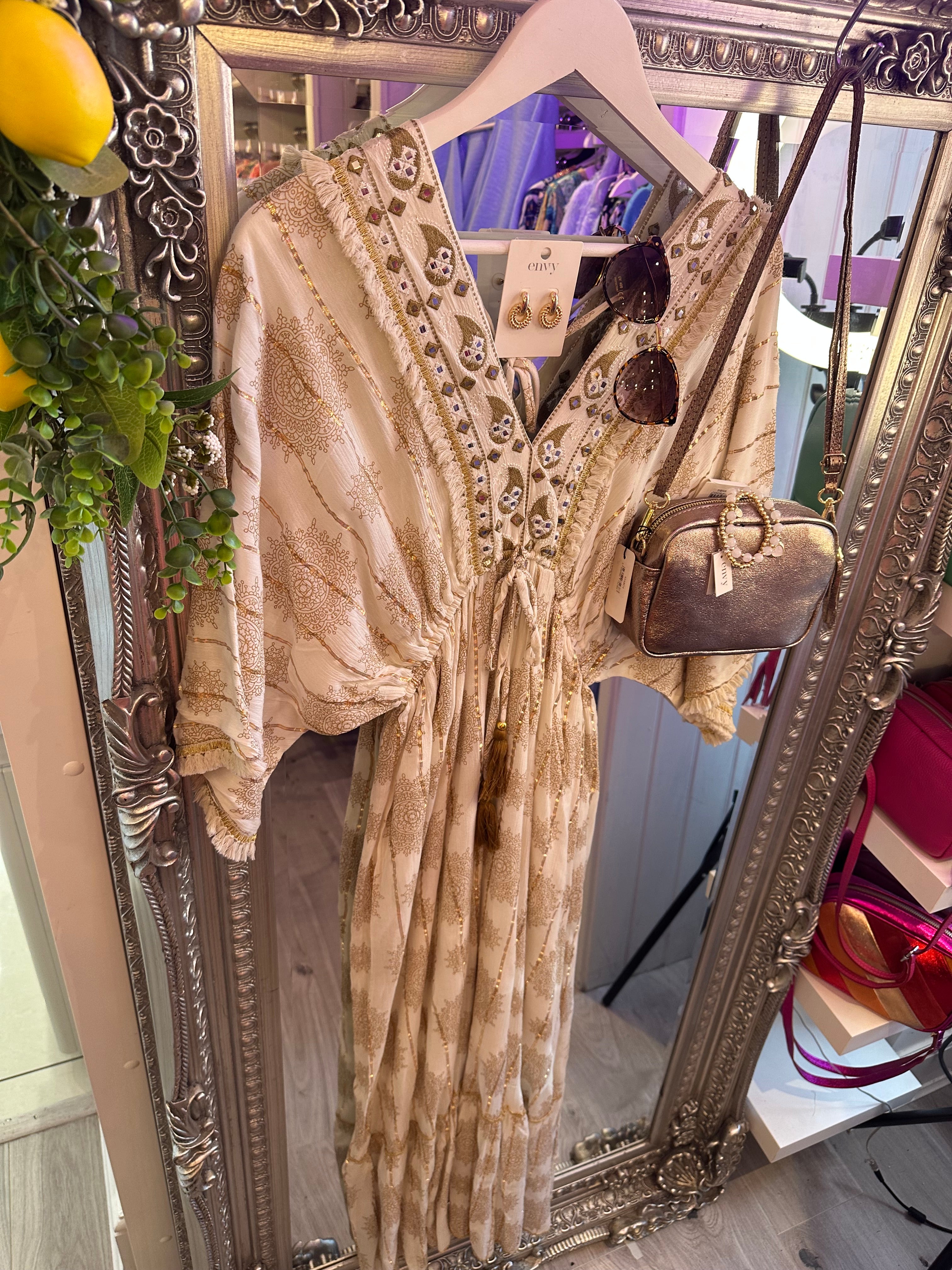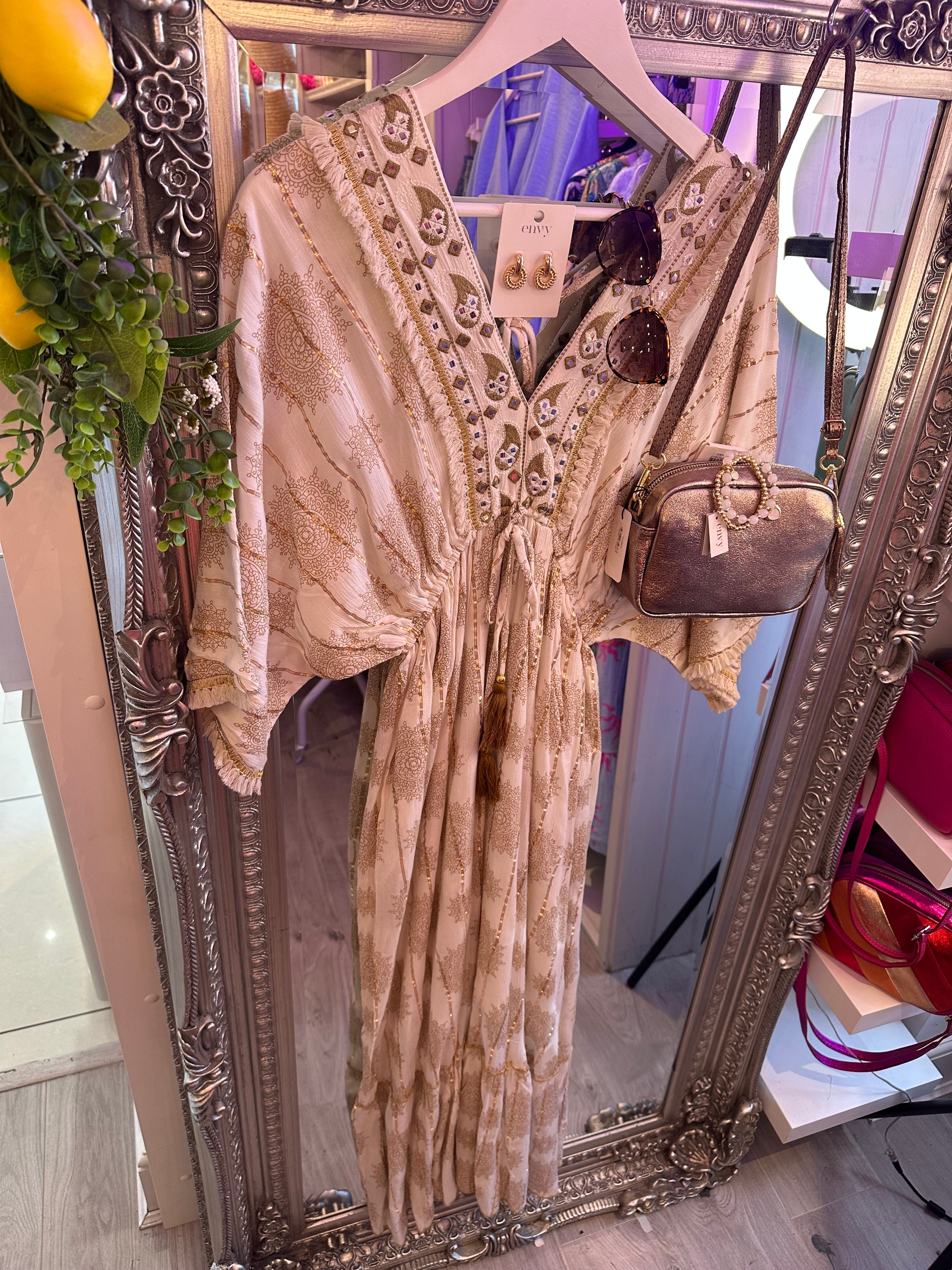 Boho cream detail dress is backordered and will ship as soon as it is back in stock.