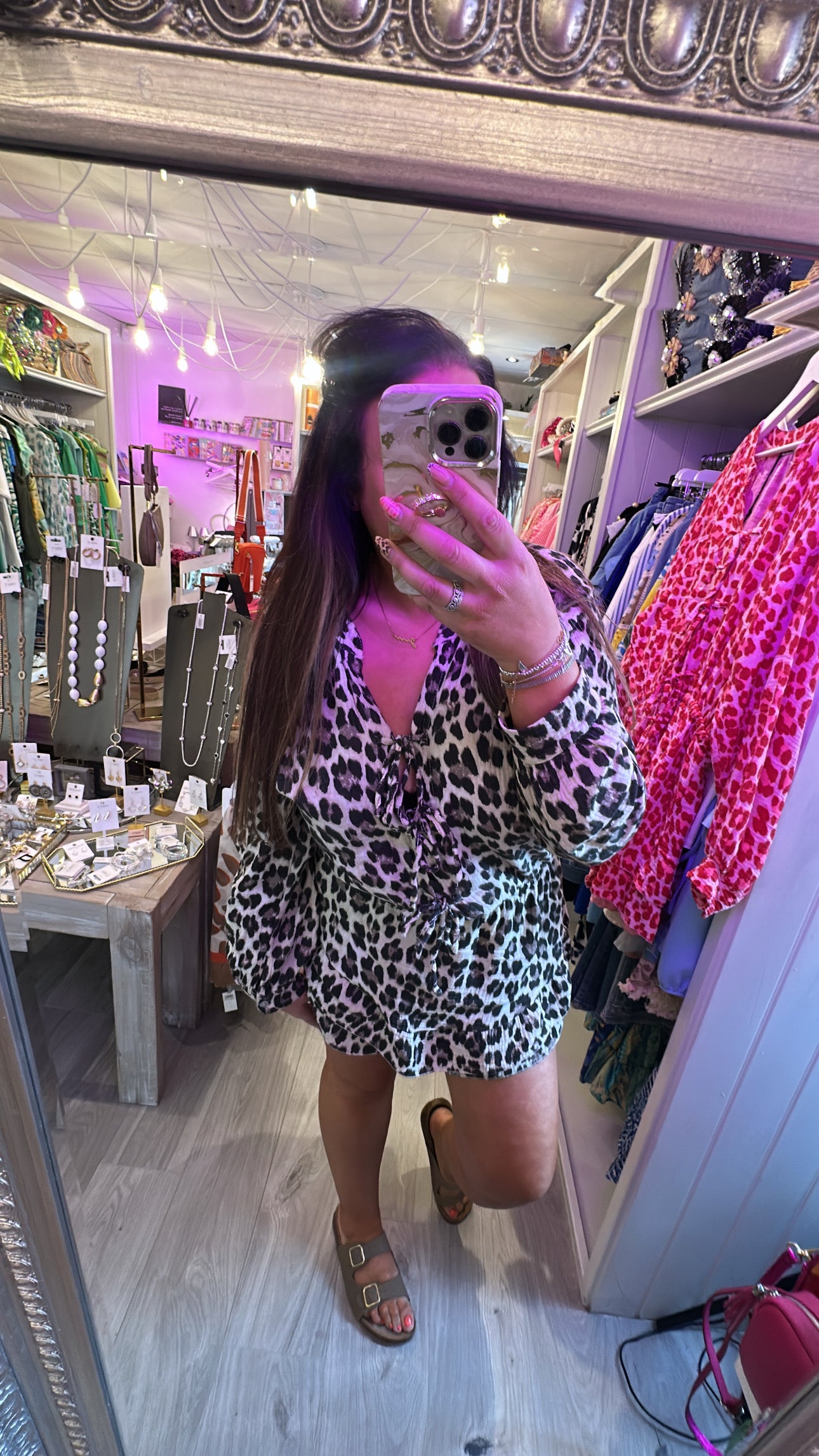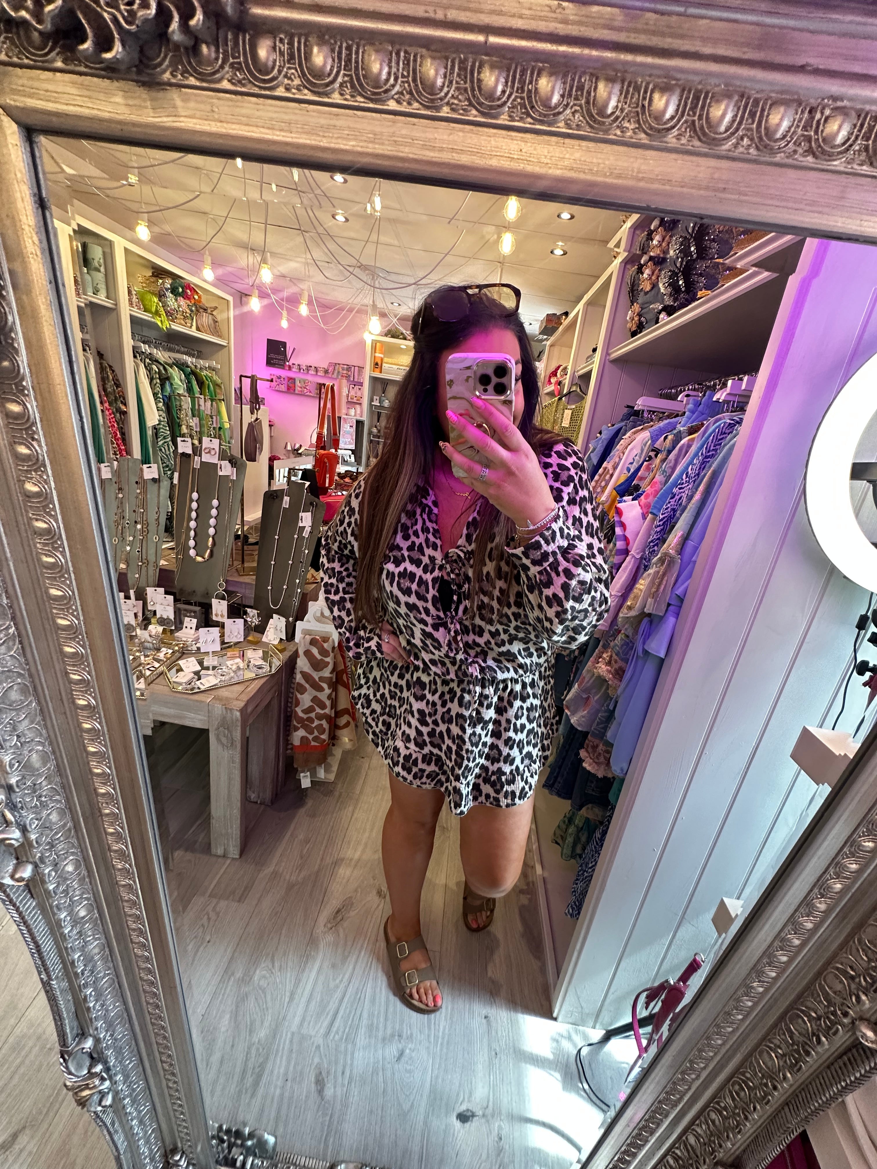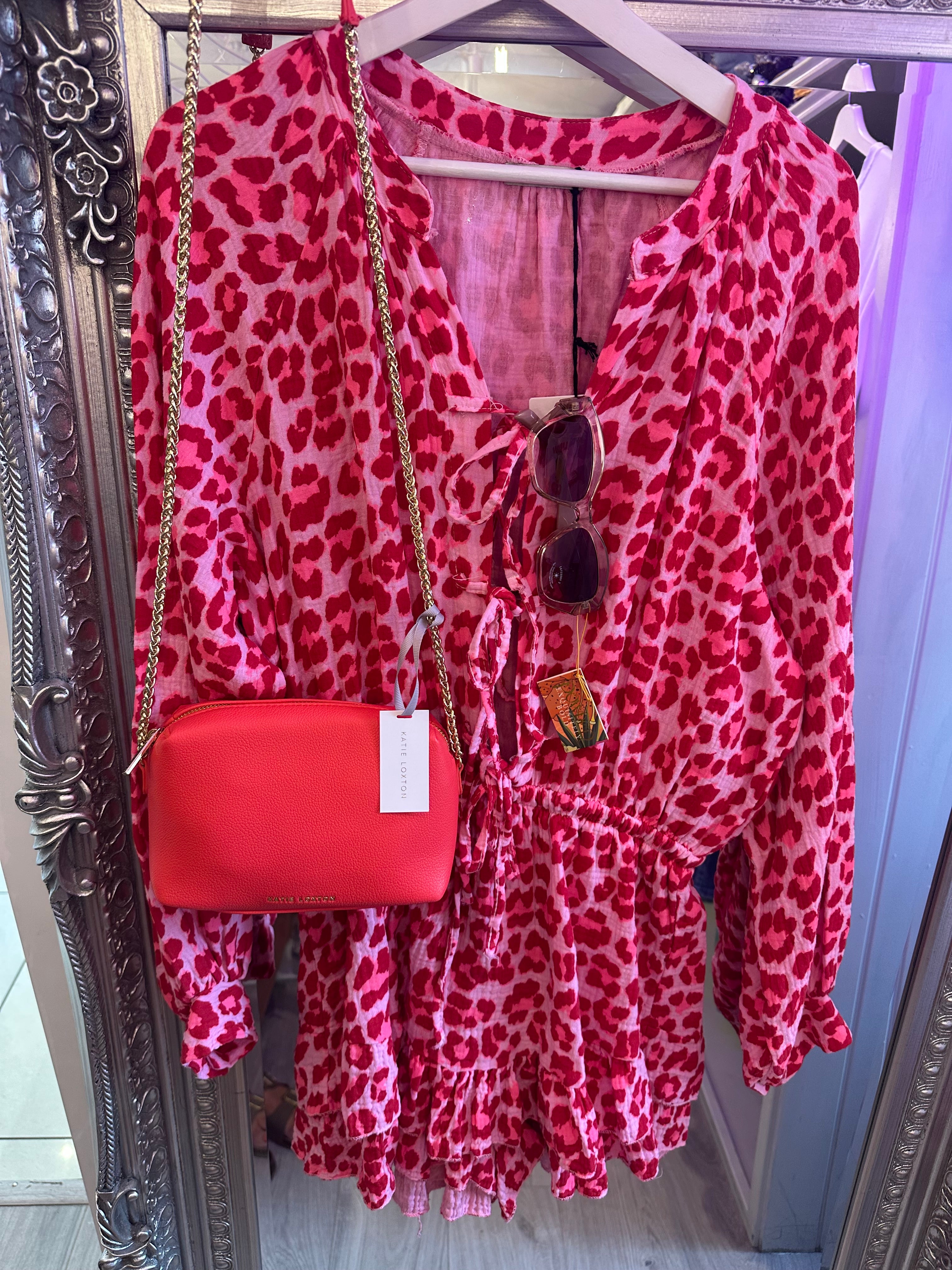 Leopard tie front playsuit - Brown is backordered and will ship as soon as it is back in stock.