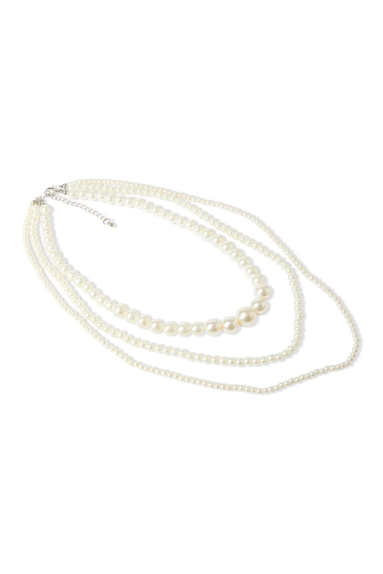 The Margate is a pearl tiered necklace, a sophisticated blend of elegance and modern style. Featuring three layers of glass bead pearls, the first layer boasts larger pearls, followed by a second layer of smaller pearls, and a third layer of delicate extra-small glass beads for a truly stunning effect.