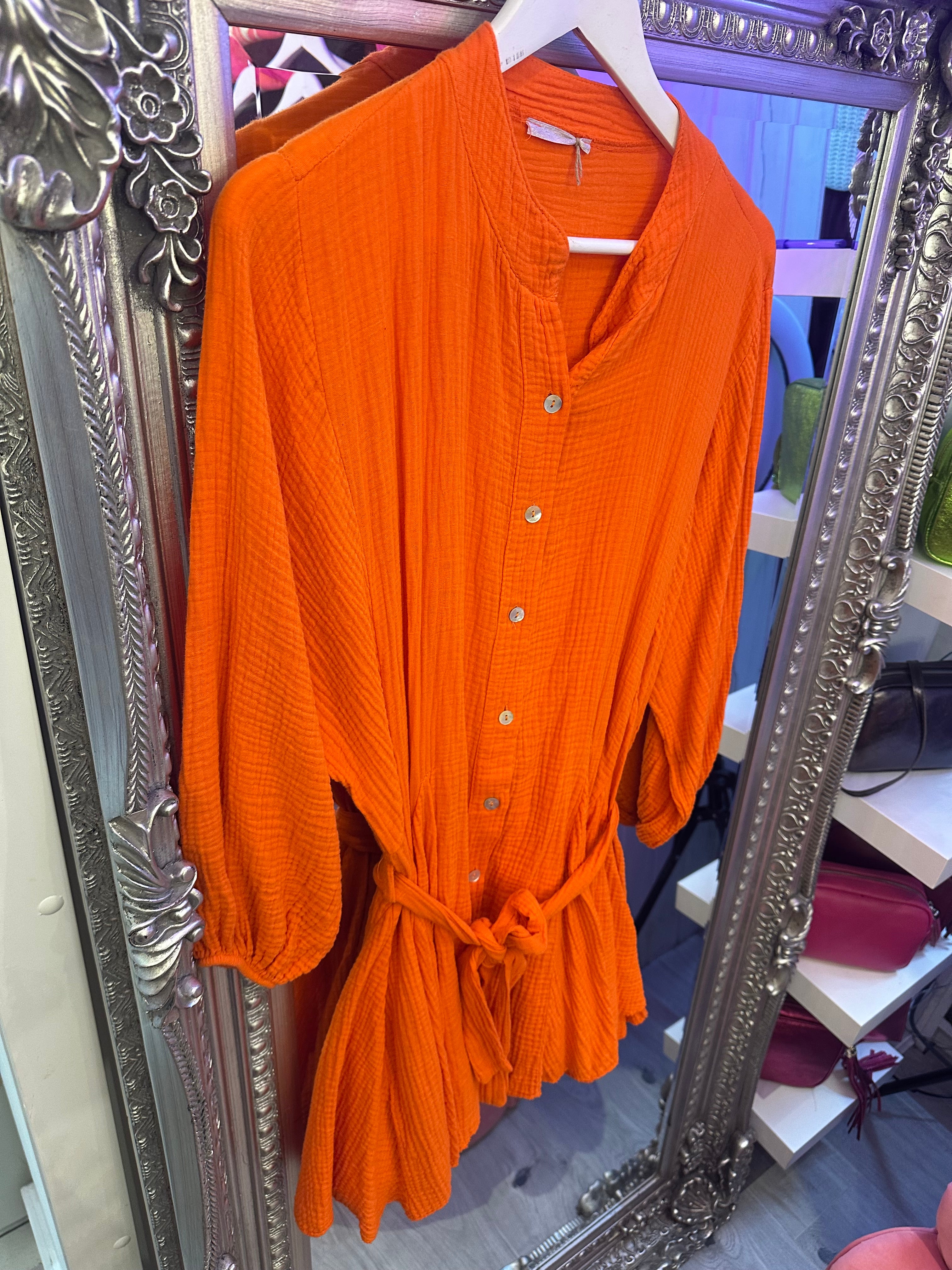 Orange cheesecloth swing dress