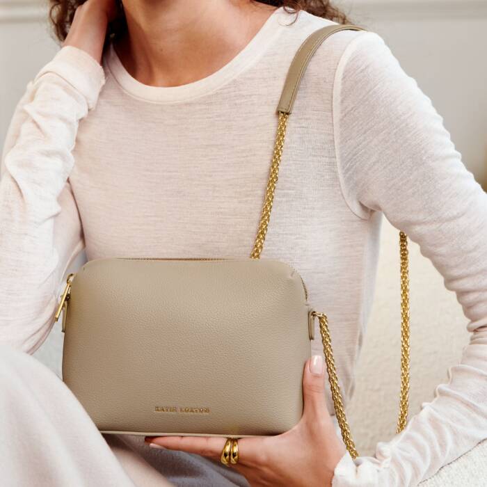 Featuring an elevated gold-tone chain crossbody strap and classic camera bag profile, the Margot Mini Crossbody Bag in Light Taupe is inspired by day-to-night dressing and promises to enhance every outfit, whatever you have planned.