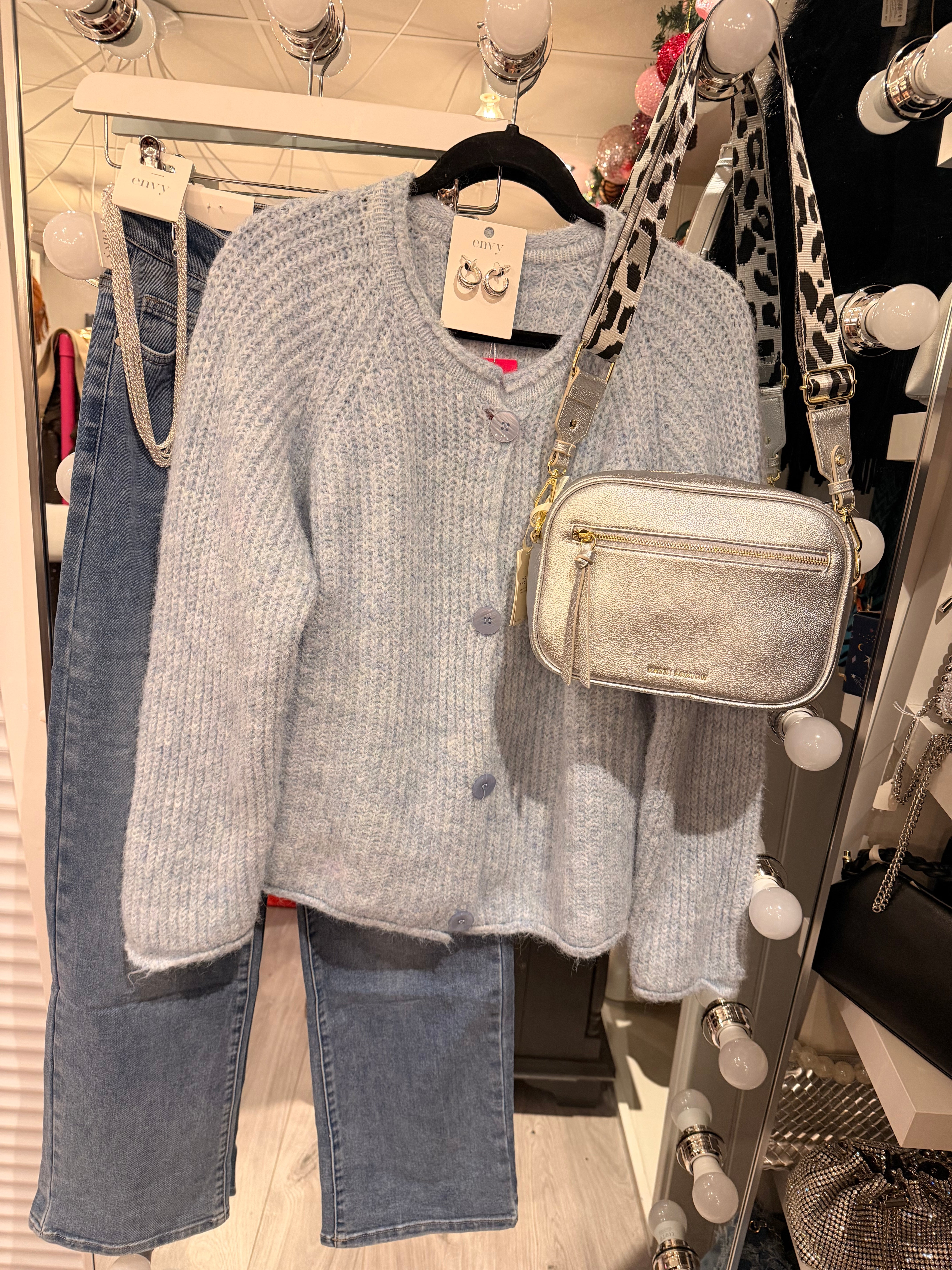 Wide leg straight stretch jeans.