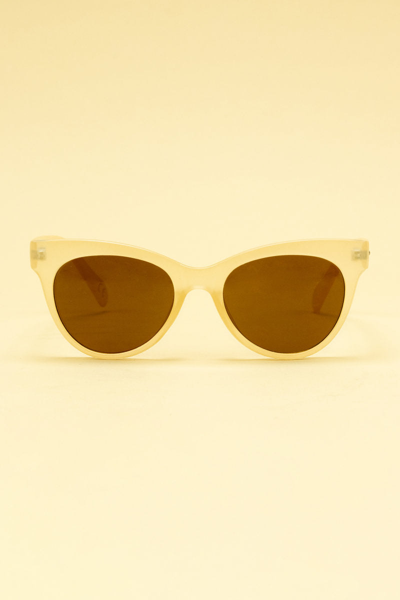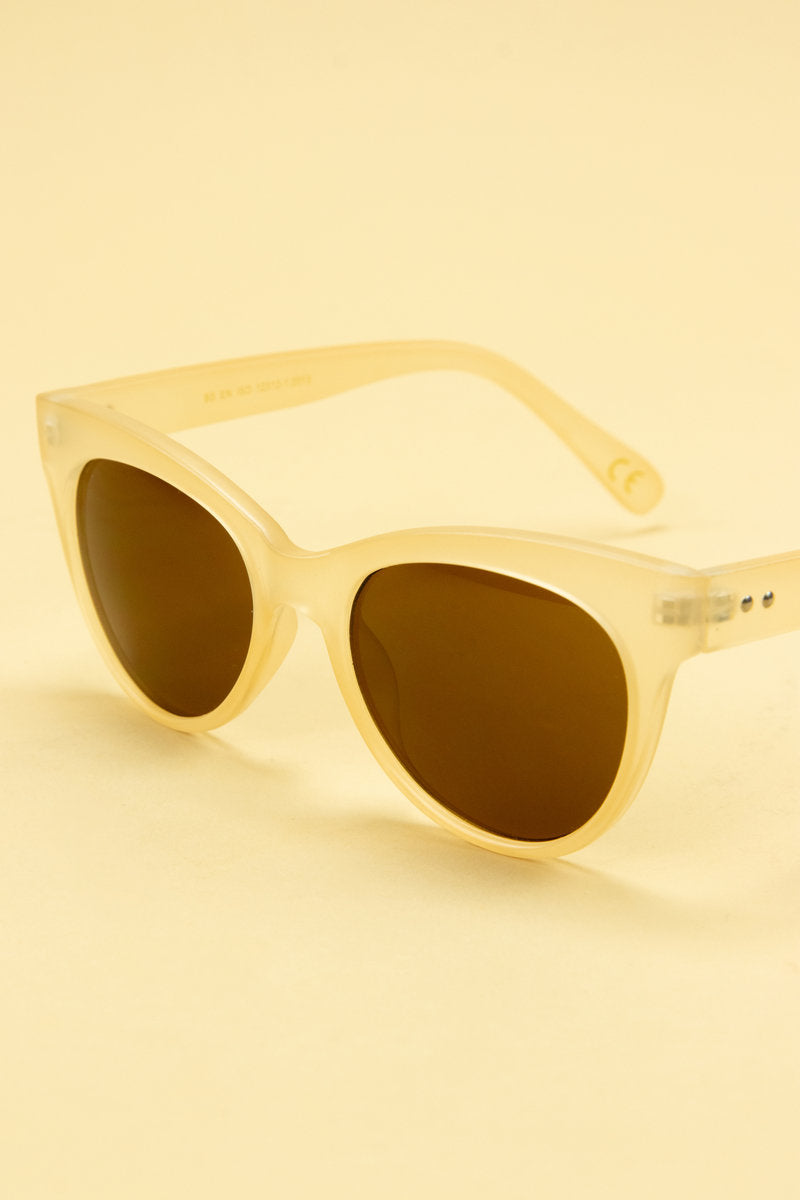Our “Pamela” sunglasses come in a unique frosted beige colour, with this neutral style colour, this is fitting for any outfit!