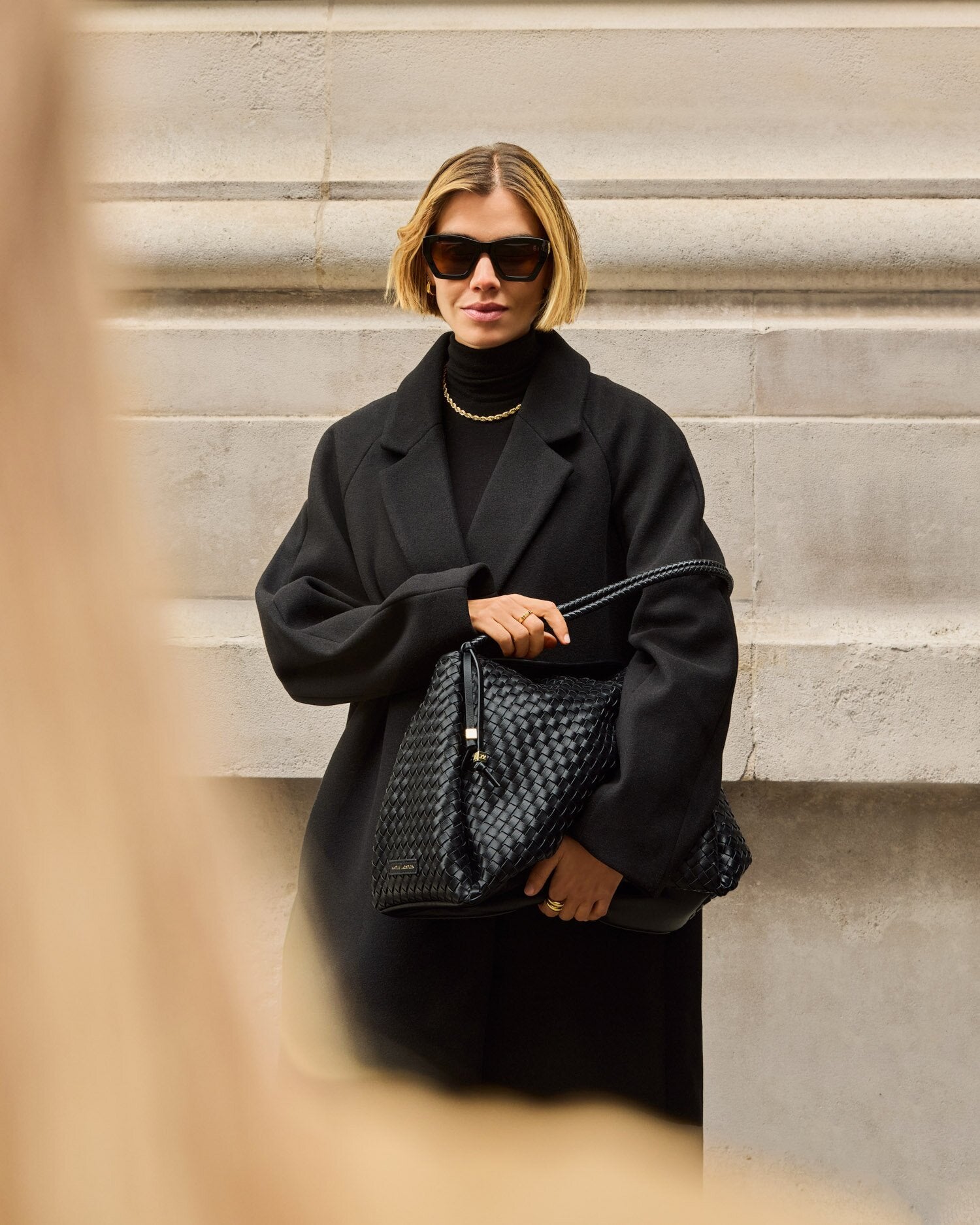 Our Nova Hand Woven Large Shoulder Bag in Black showcases soft-to-touch woven vegan leather, adding texture and dimension to any look. Considered details include an easy magnetic closure, an internal zip pocket for valuables, and a signature branded bag charm. Designed to suit both work and play, it’s the must-have profile of the season.