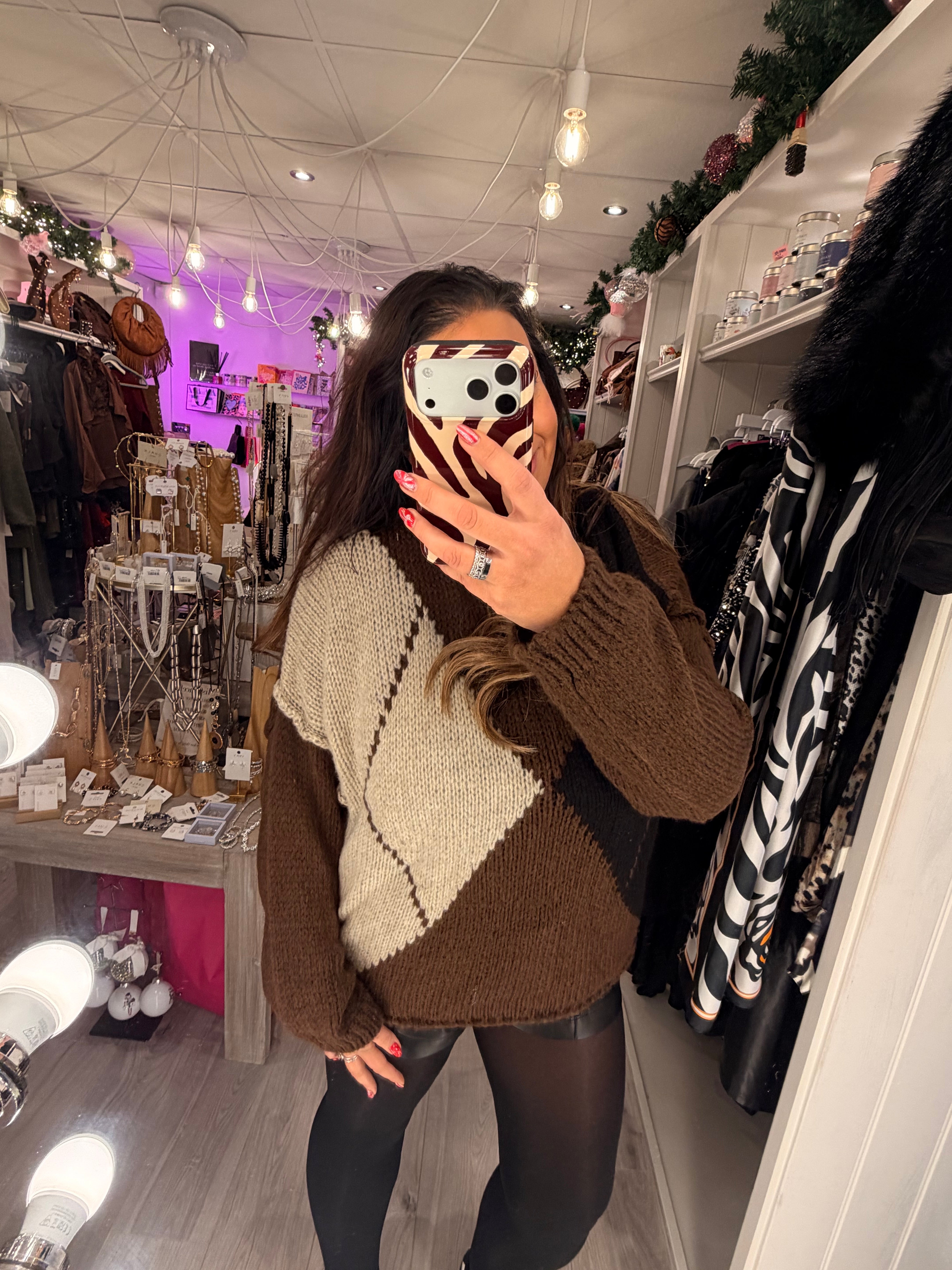 Argyle oversized soft knit jumper
