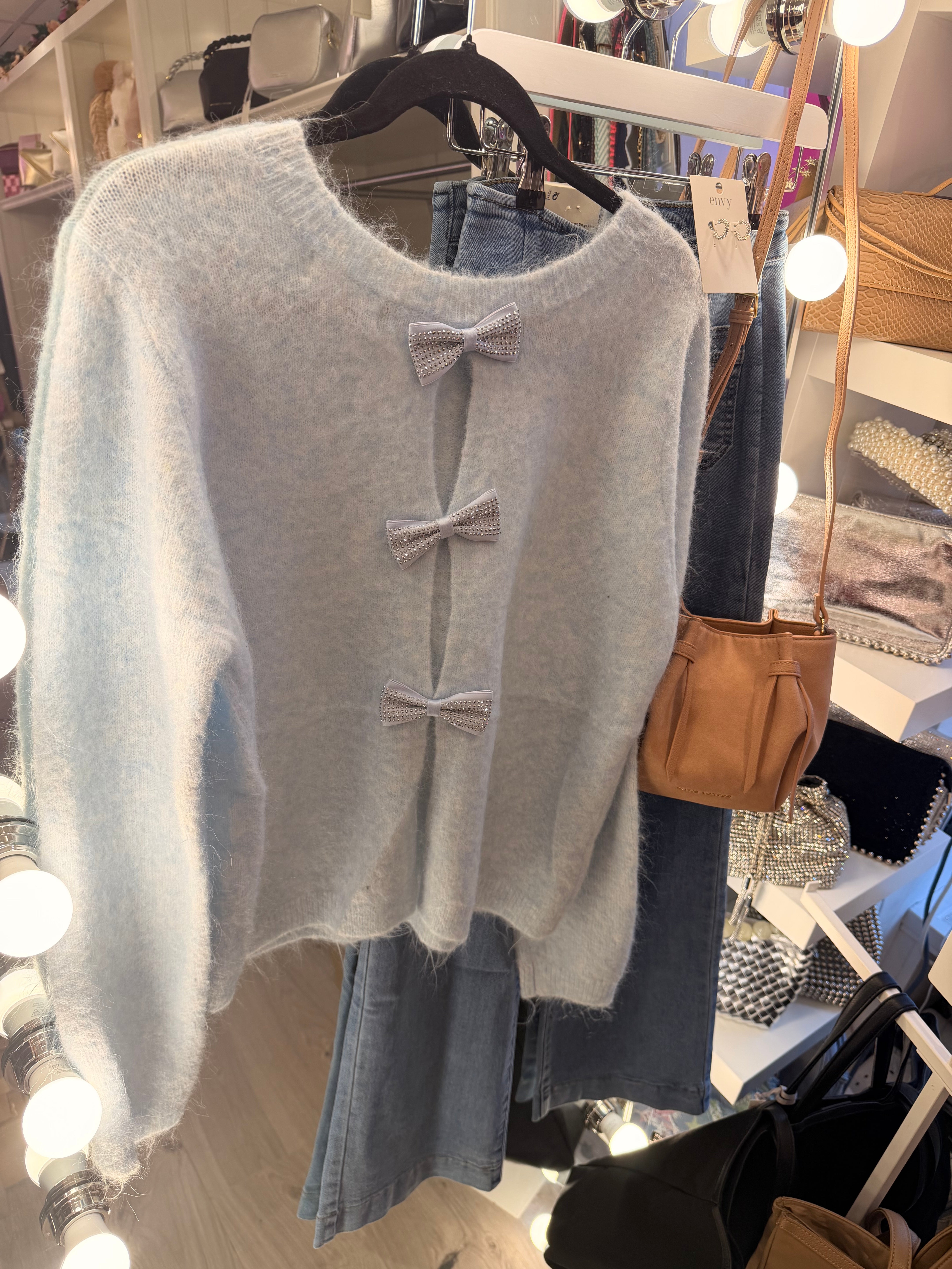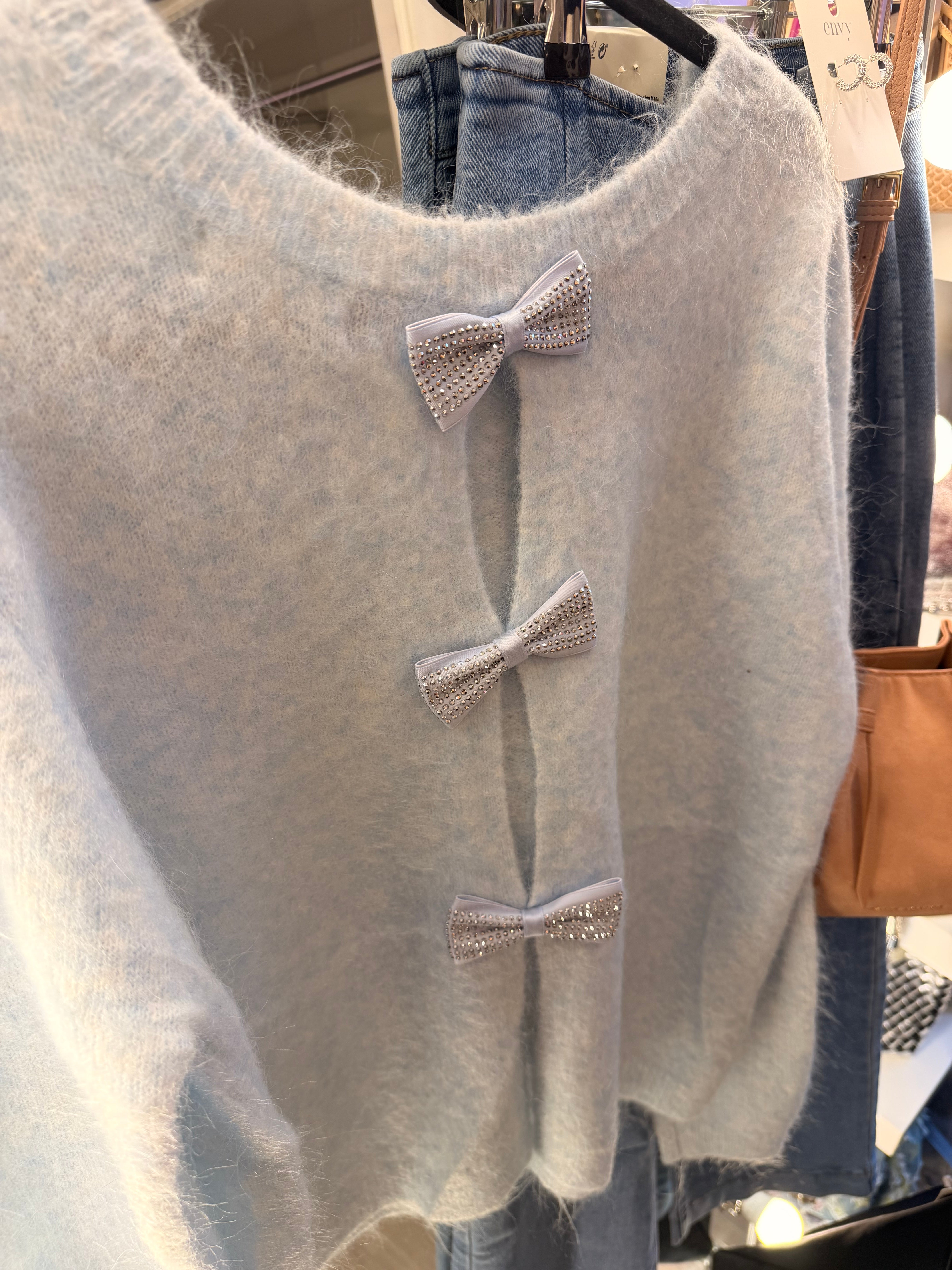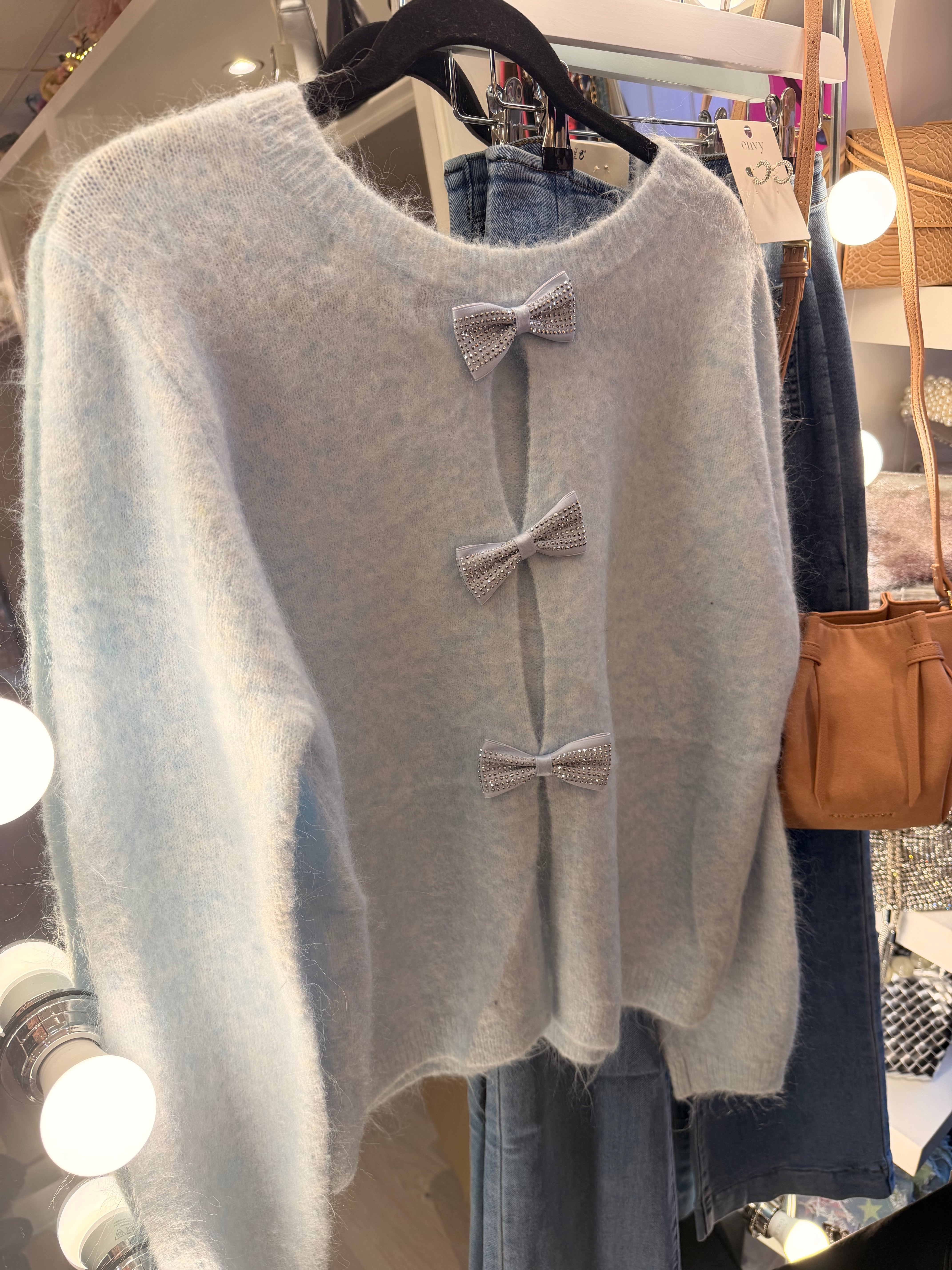 Bow back soft knit - Sky blue is backordered and will ship as soon as it is back in stock.