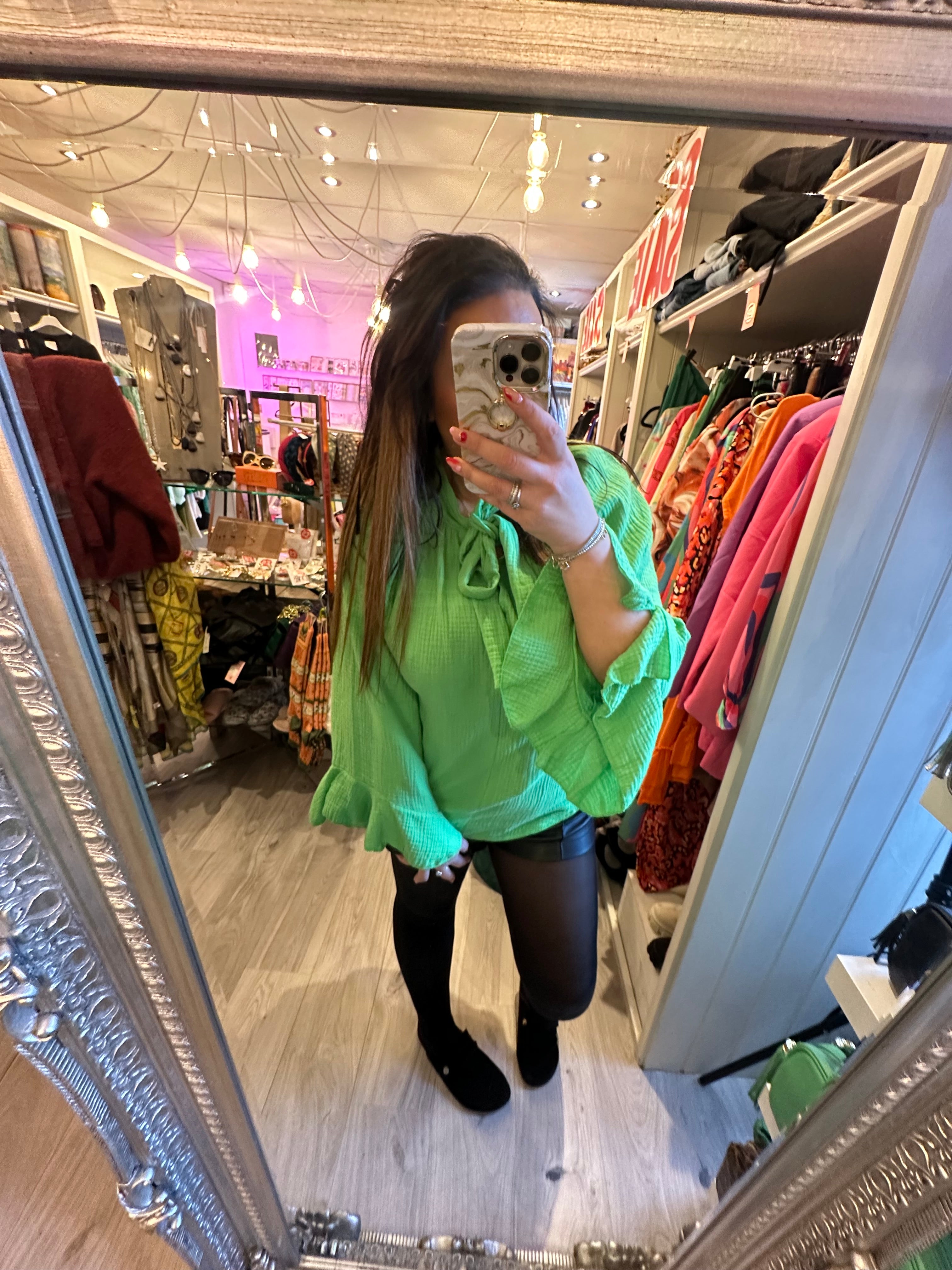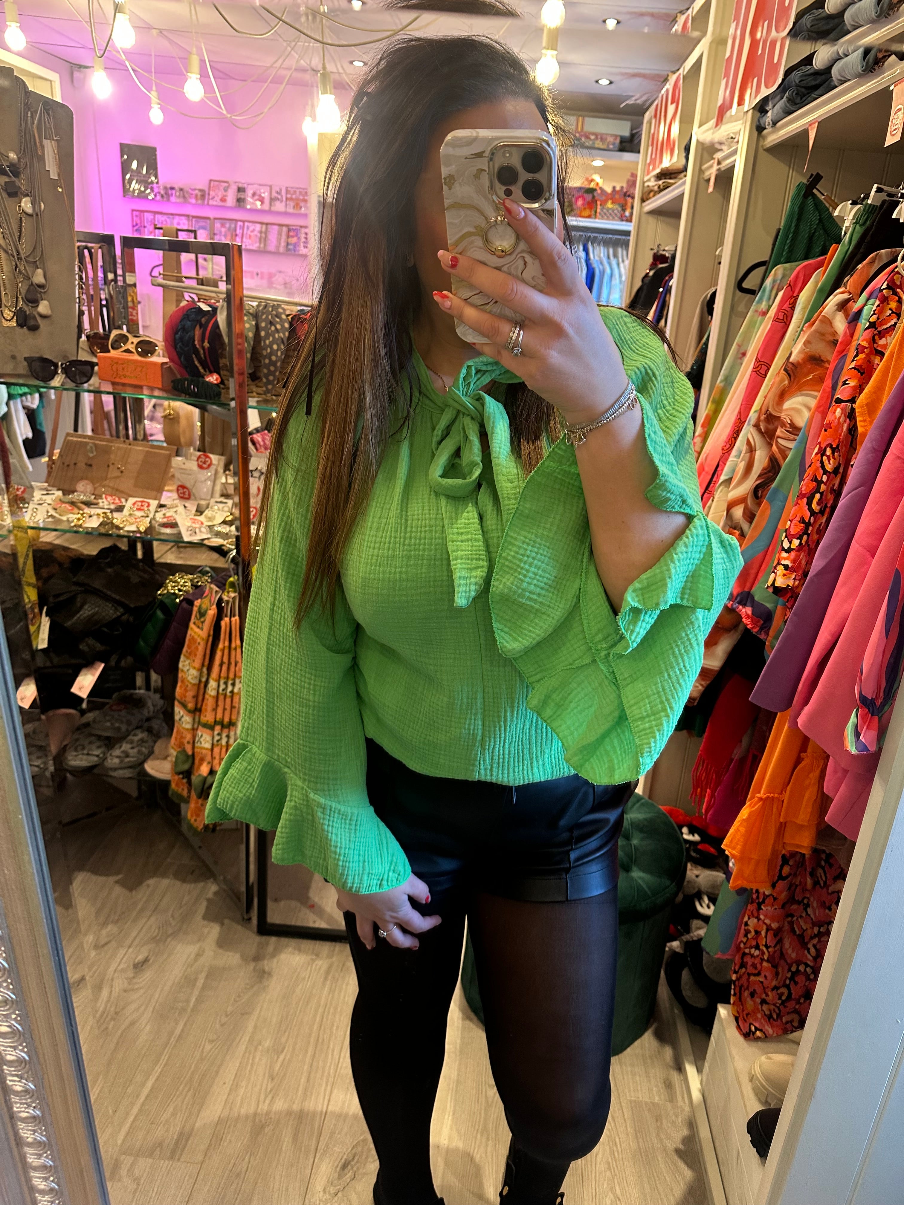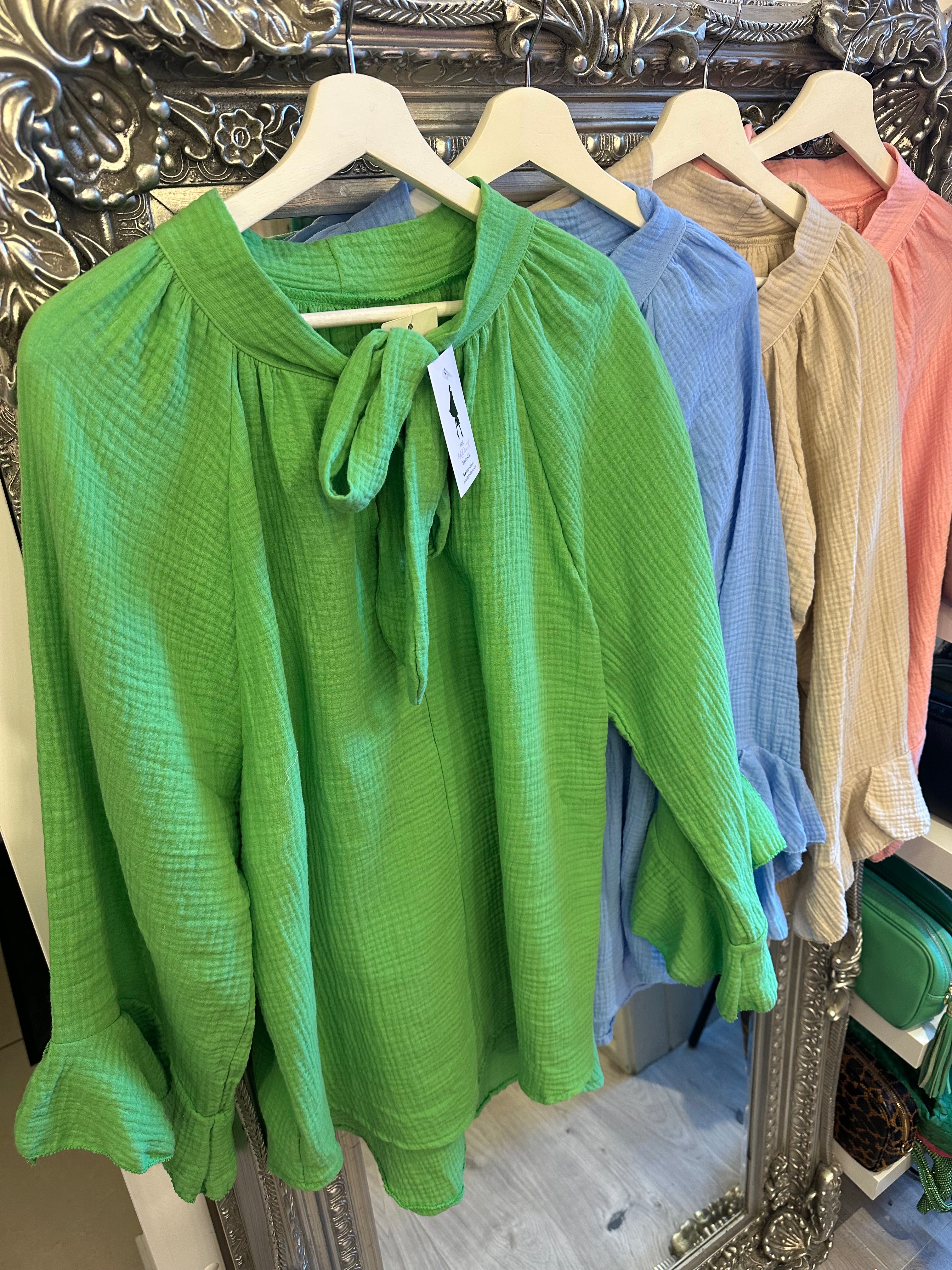 Cheesecloth bow blouse - Apple Green is backordered and will ship as soon as it is back in stock.
