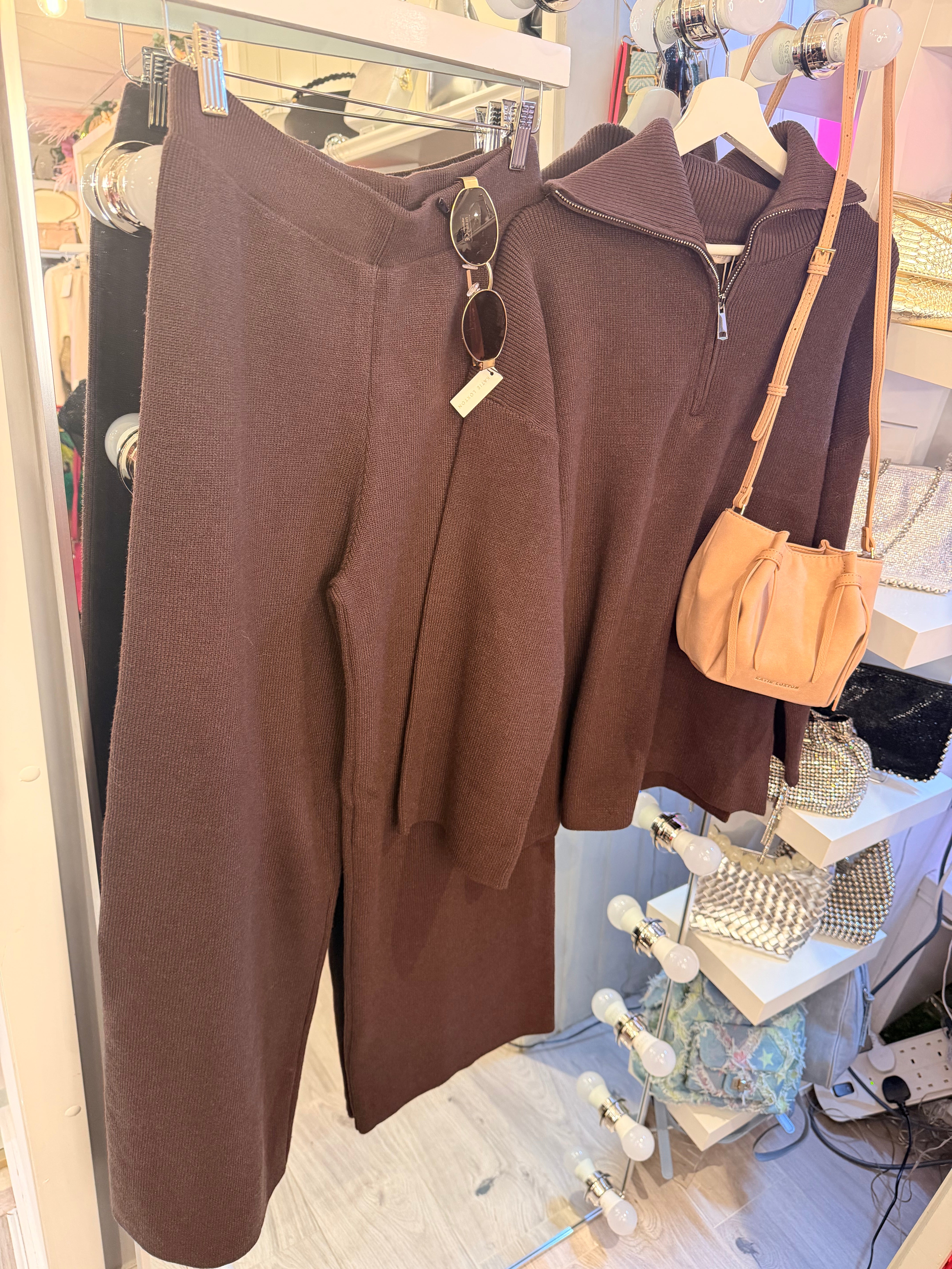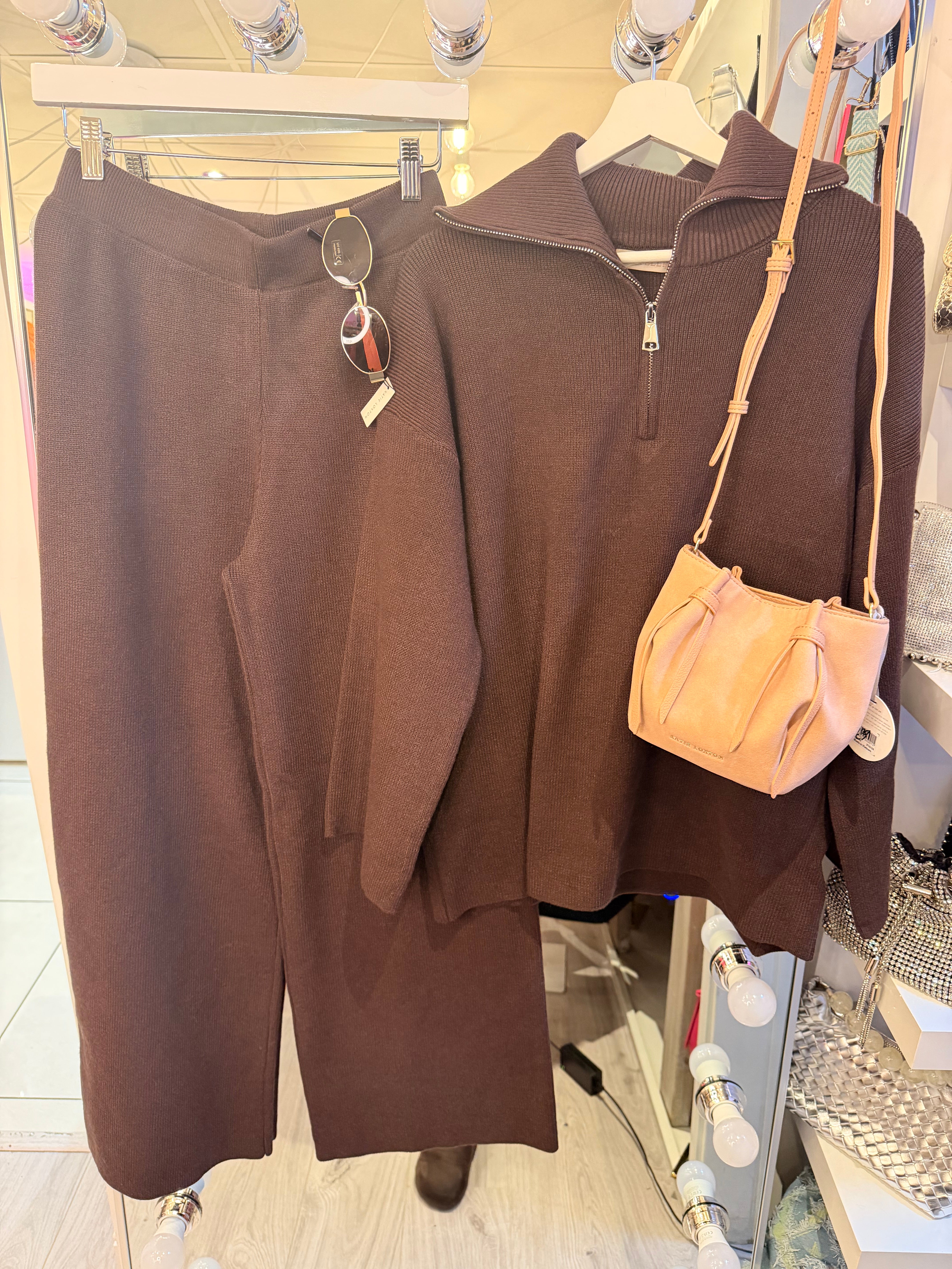 Chocolate Soft knit quarter zip co-ord
