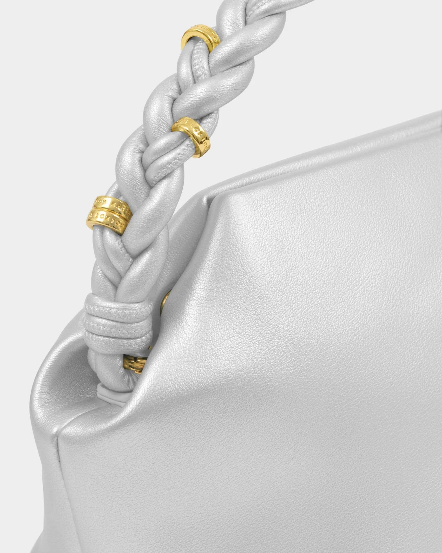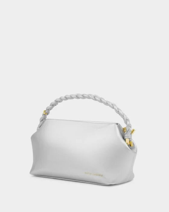 Katie Loxton Arden Braided Top Handle Bag -Silver is backordered and will ship as soon as it is back in stock.