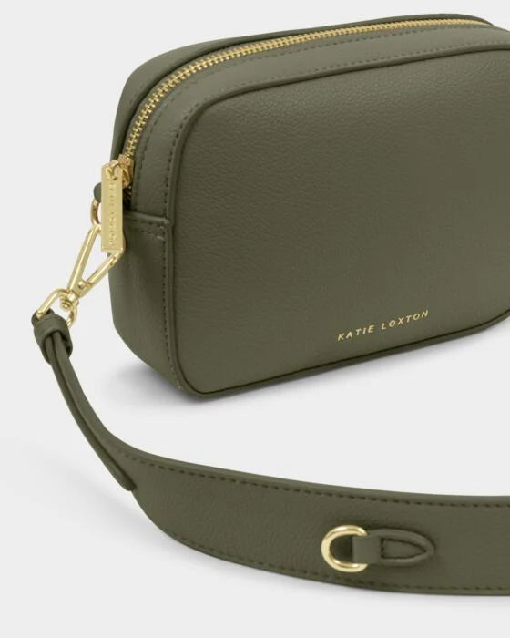 Our Avery Small Crossbody Bag in Khaki showcases a timeless camera bag silhouette with a secure top zip closure and a detachable, adjustable strap with asymmetric detail. Finished with gold-tone branded logo hardware on the strap, it’s an everyday essential for the girl on the go.