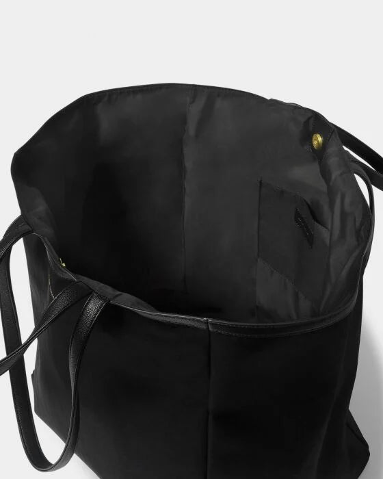Introducing our biggest bag yet: the Nylon-Luxe Oversized Tote in Black. Showcasing a durable, water-resistant nylon material making it perfect for the beach, gym, and everything in between! Designed to carry all your essentials with its super spacious interior and internal pockets, while the shoulder strap and top handle ensure comfortable carrying.