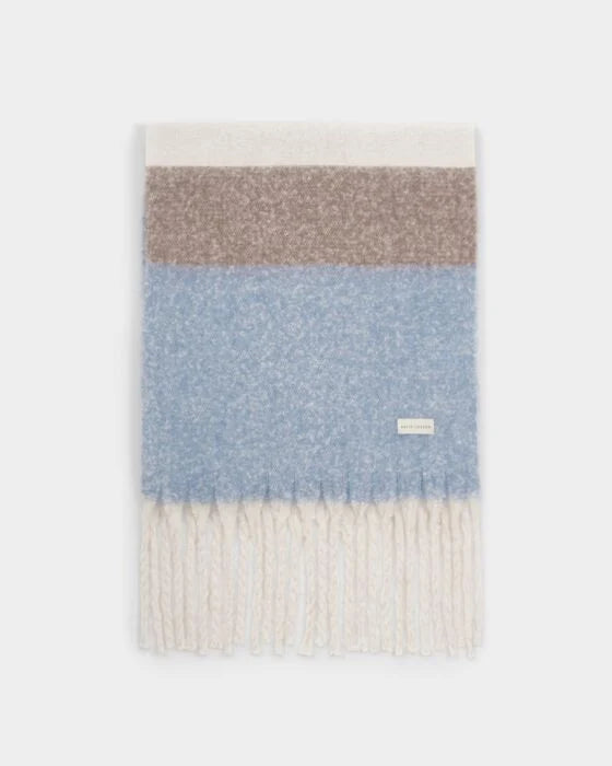 Katie Loxton Recycled Striped Tassel Scarf blue