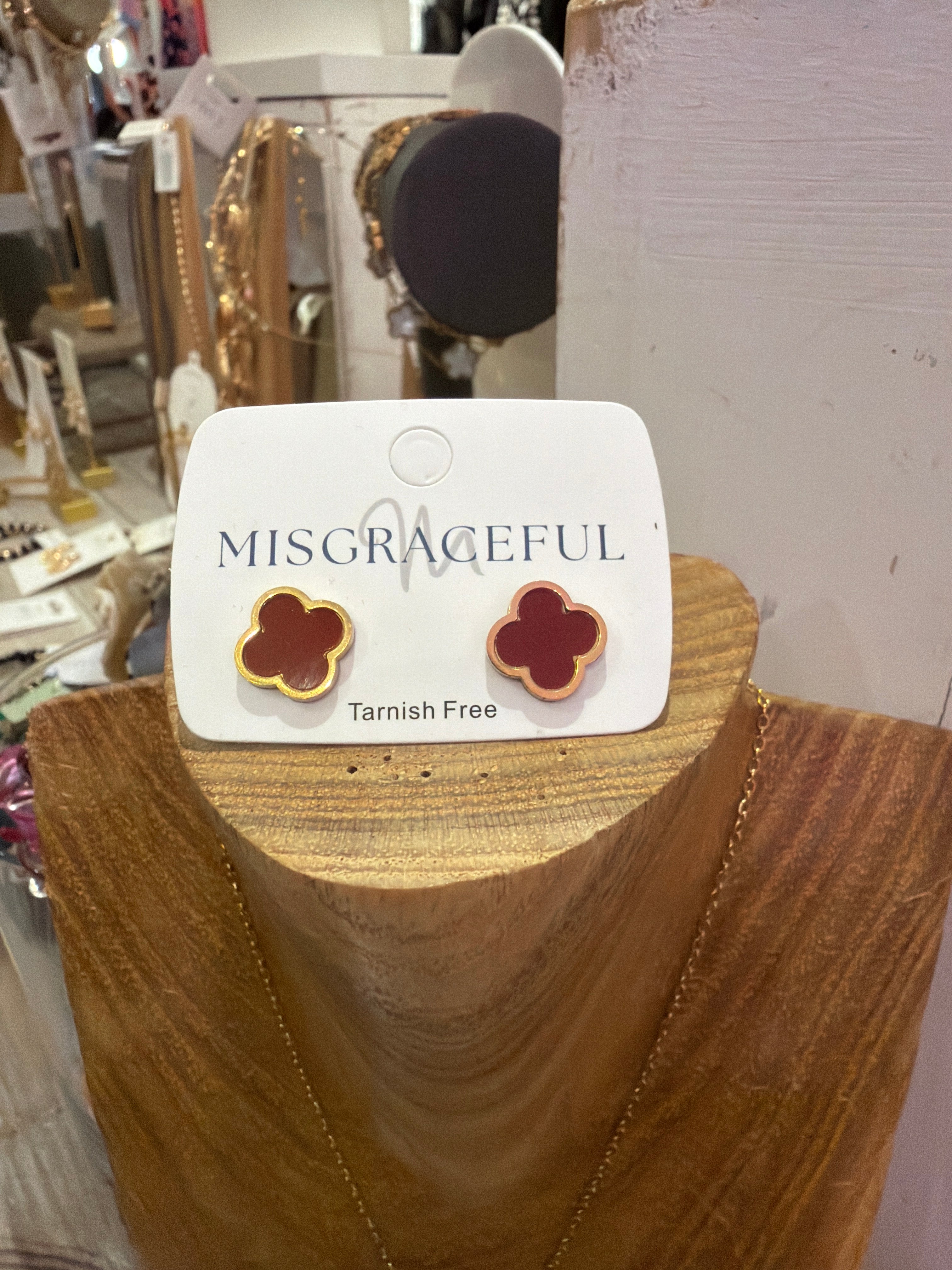 Mis graceful clover burgundy earrings