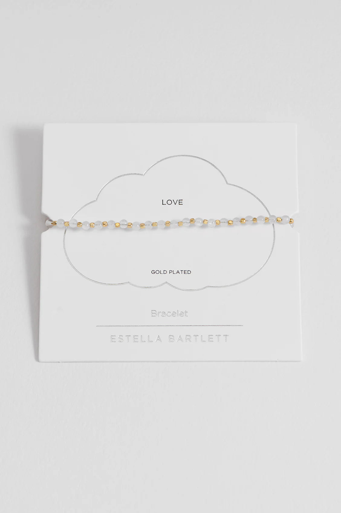 Our classic Amelia bracelet is dotted with moonstone and gold plated beads with a slider fastening, making it suitable for any wrist size. Moonstone is thought to balance out your emotions and give you good luck. The slider fastening means it will be suitable for any wrist size! Please note that due to the natural quality of our gemstones, the colour is unique to each piece and may vary from the image on our site.