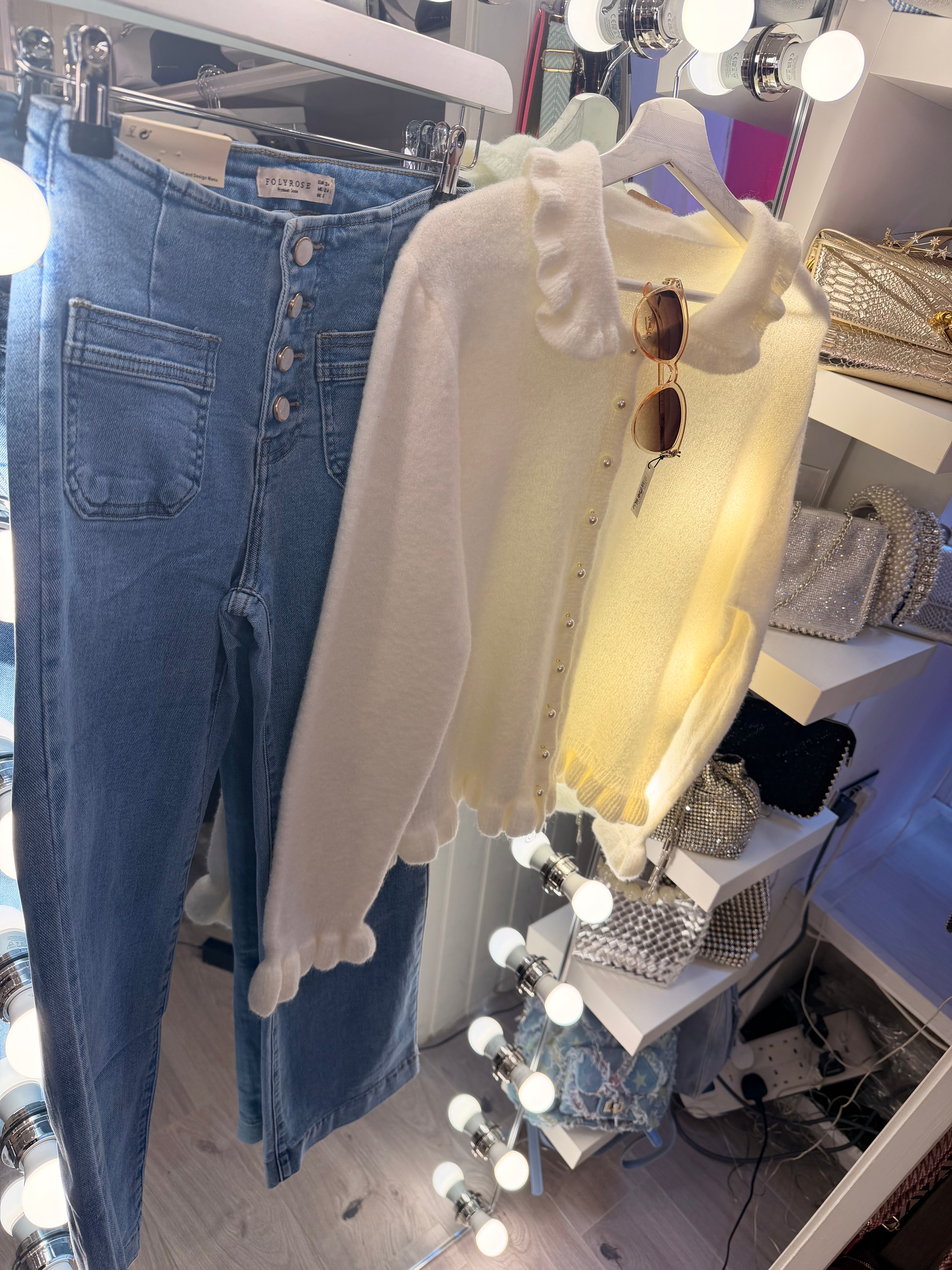 Winter white super soft knit jumper with pearl buttons.