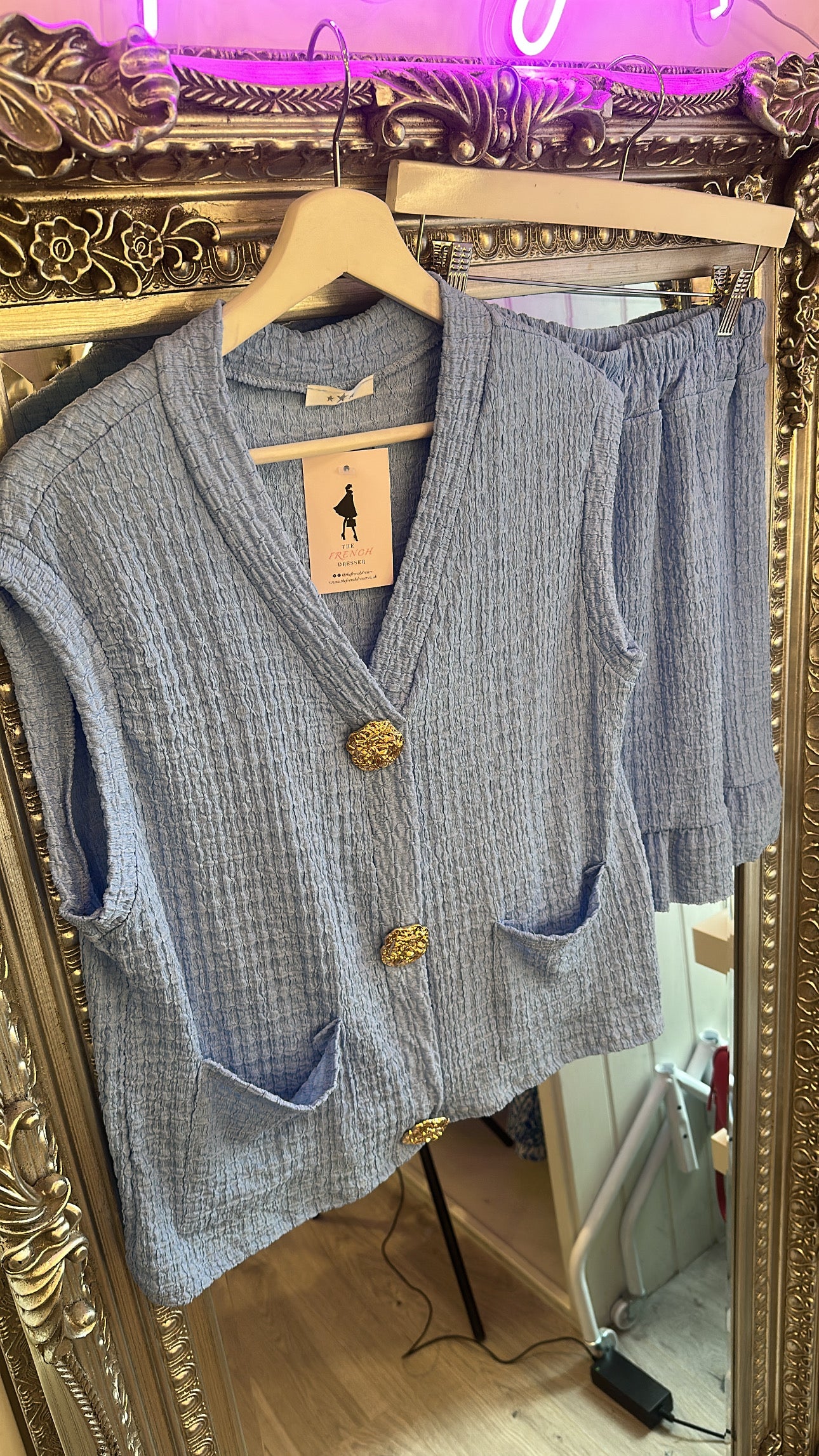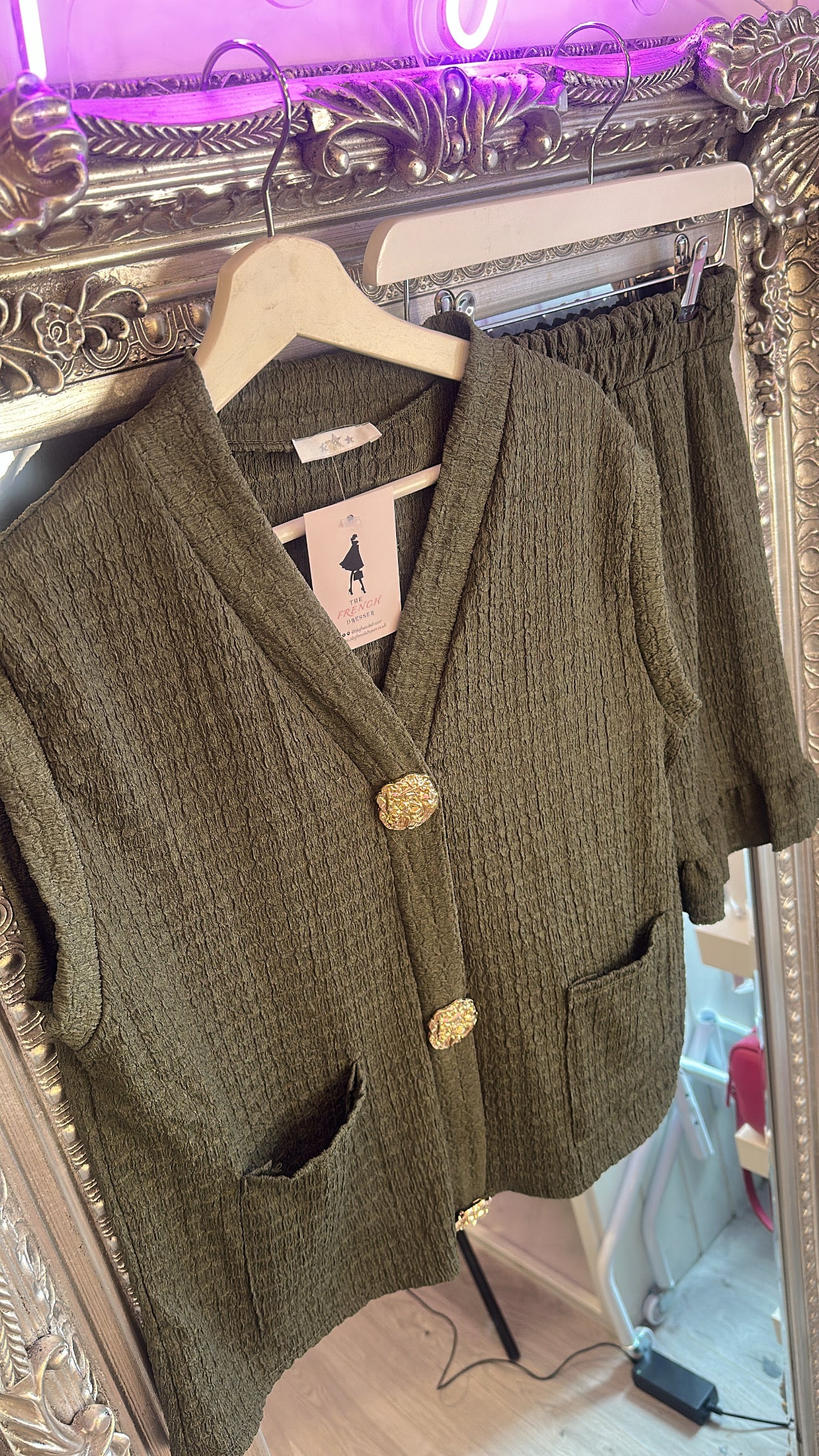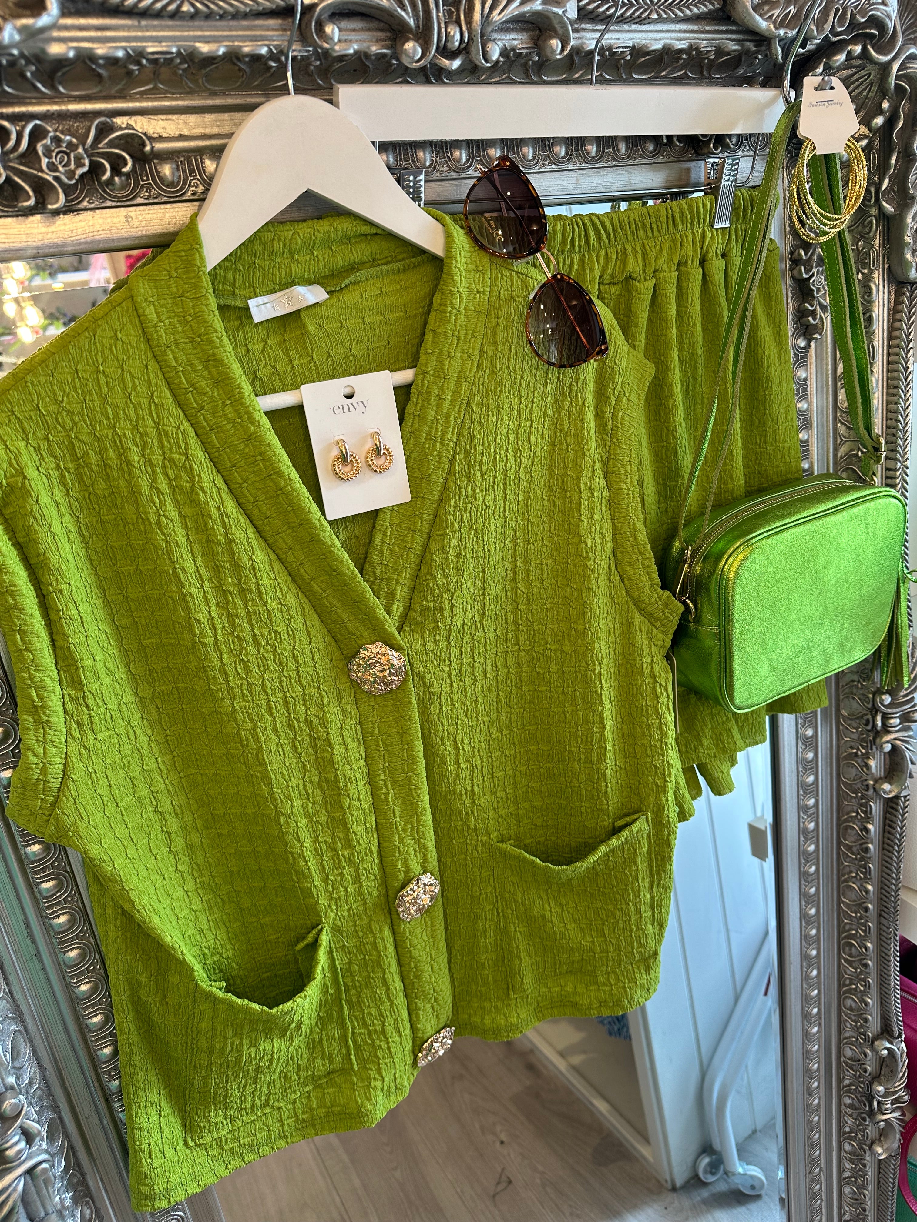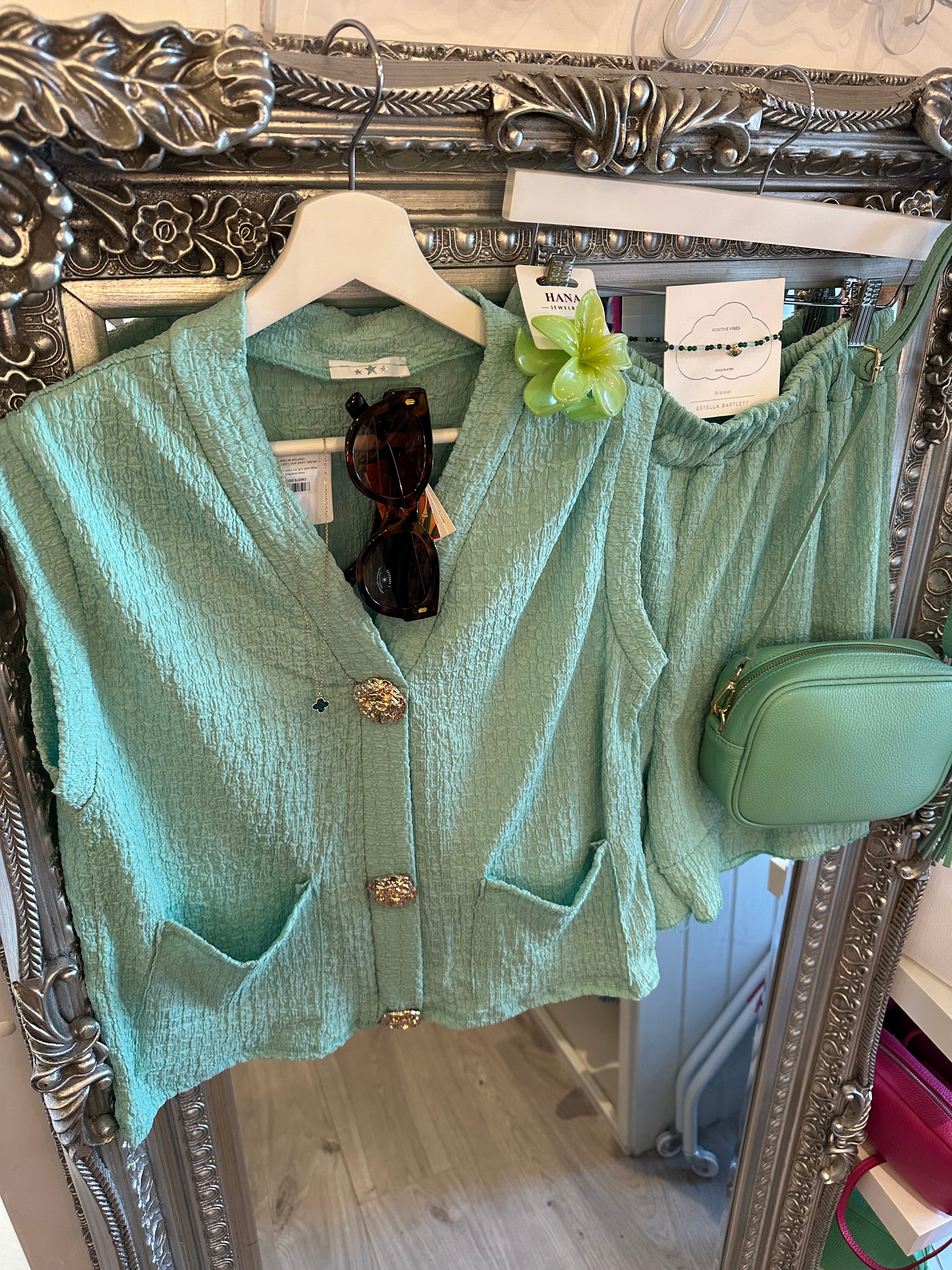 Crinkle Co-ord set with gold button detail