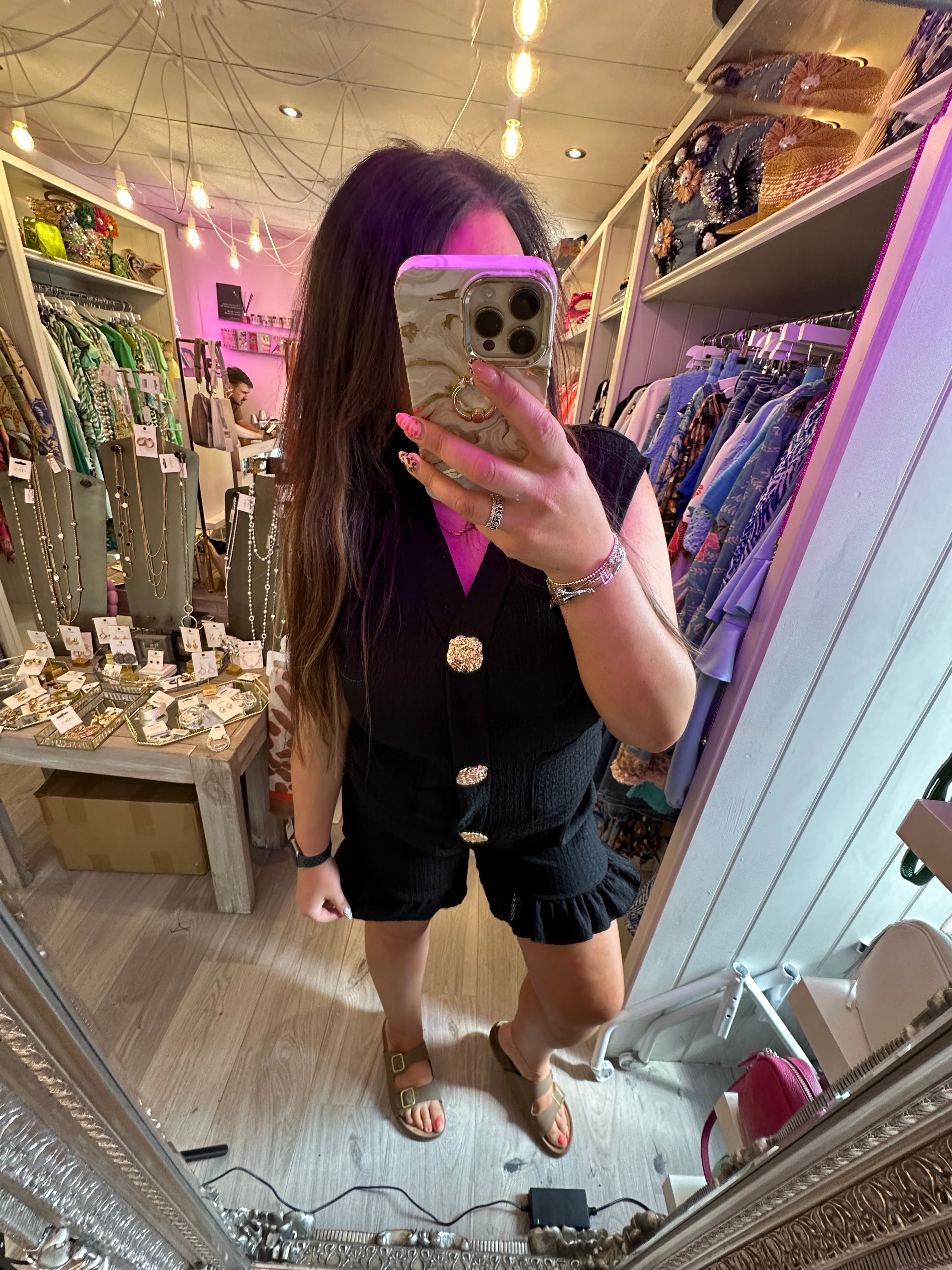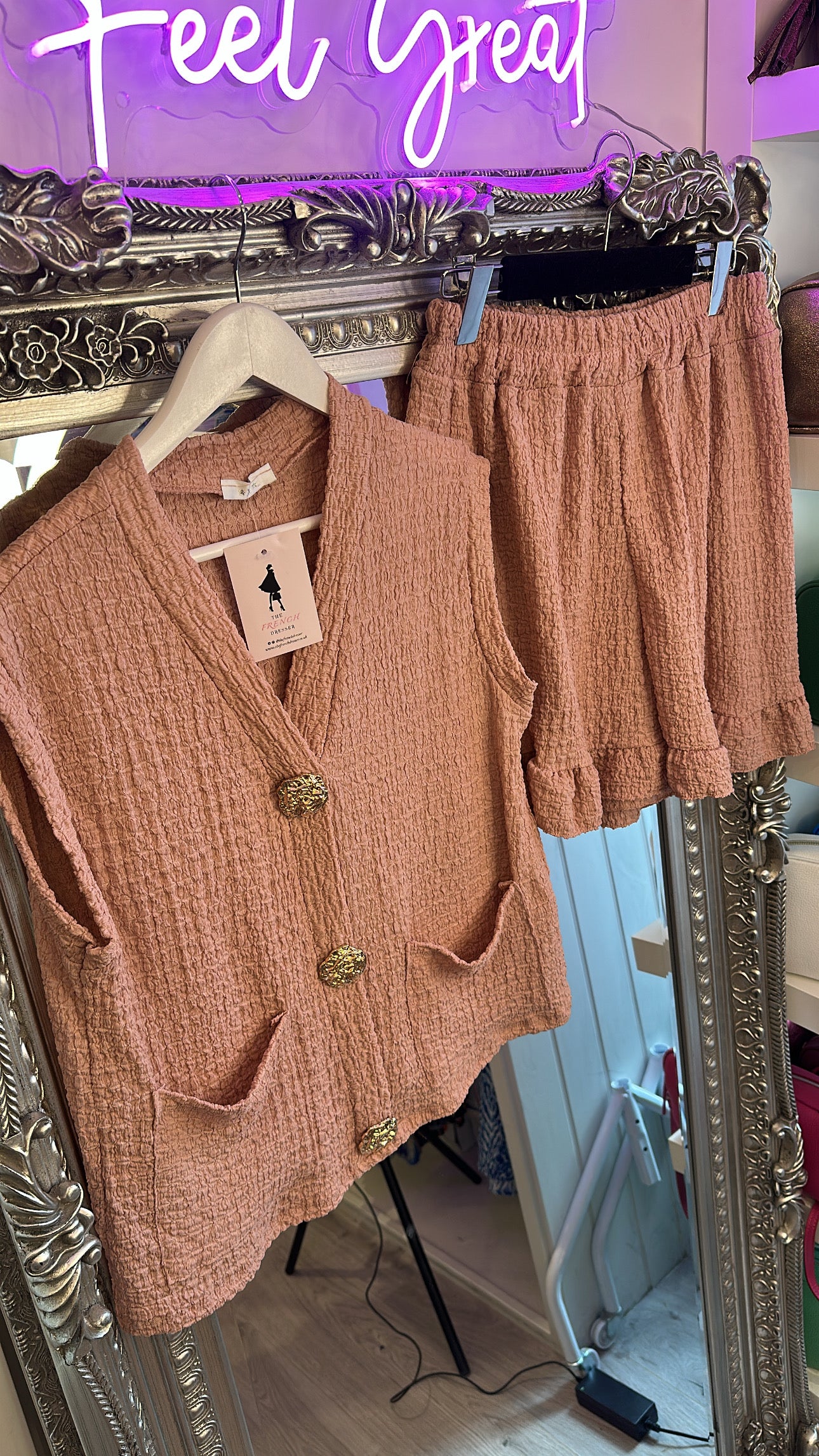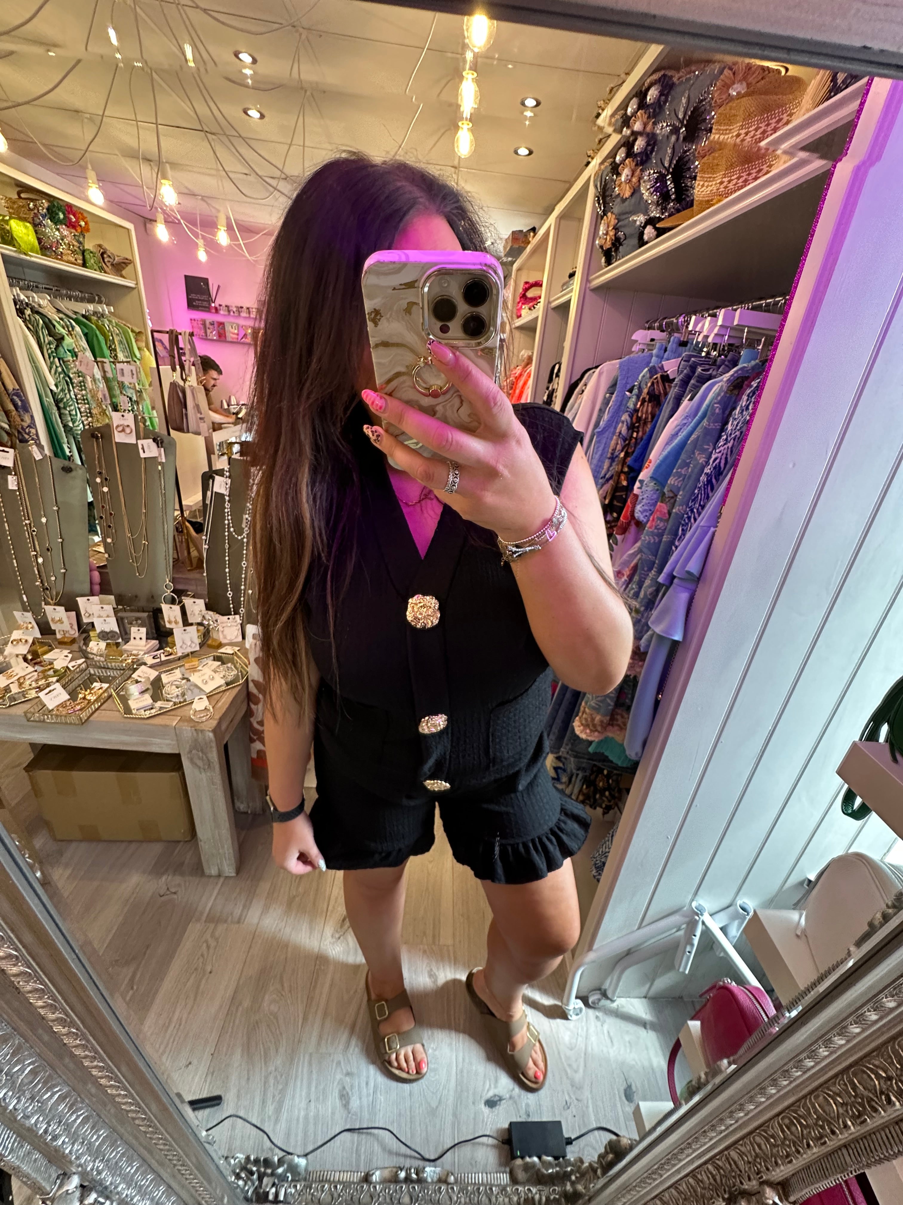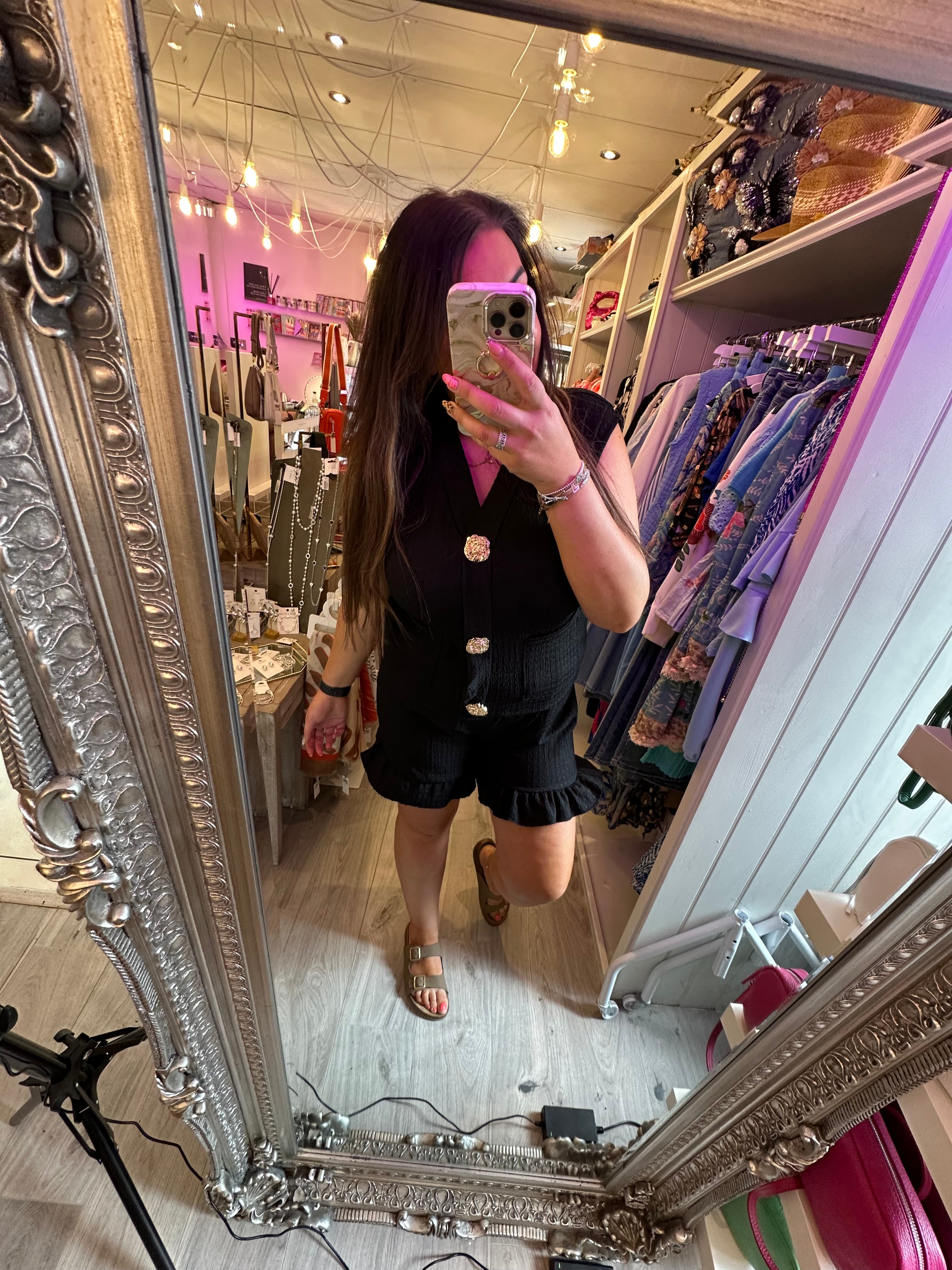 Crinkle Co-ord set with gold button detail
