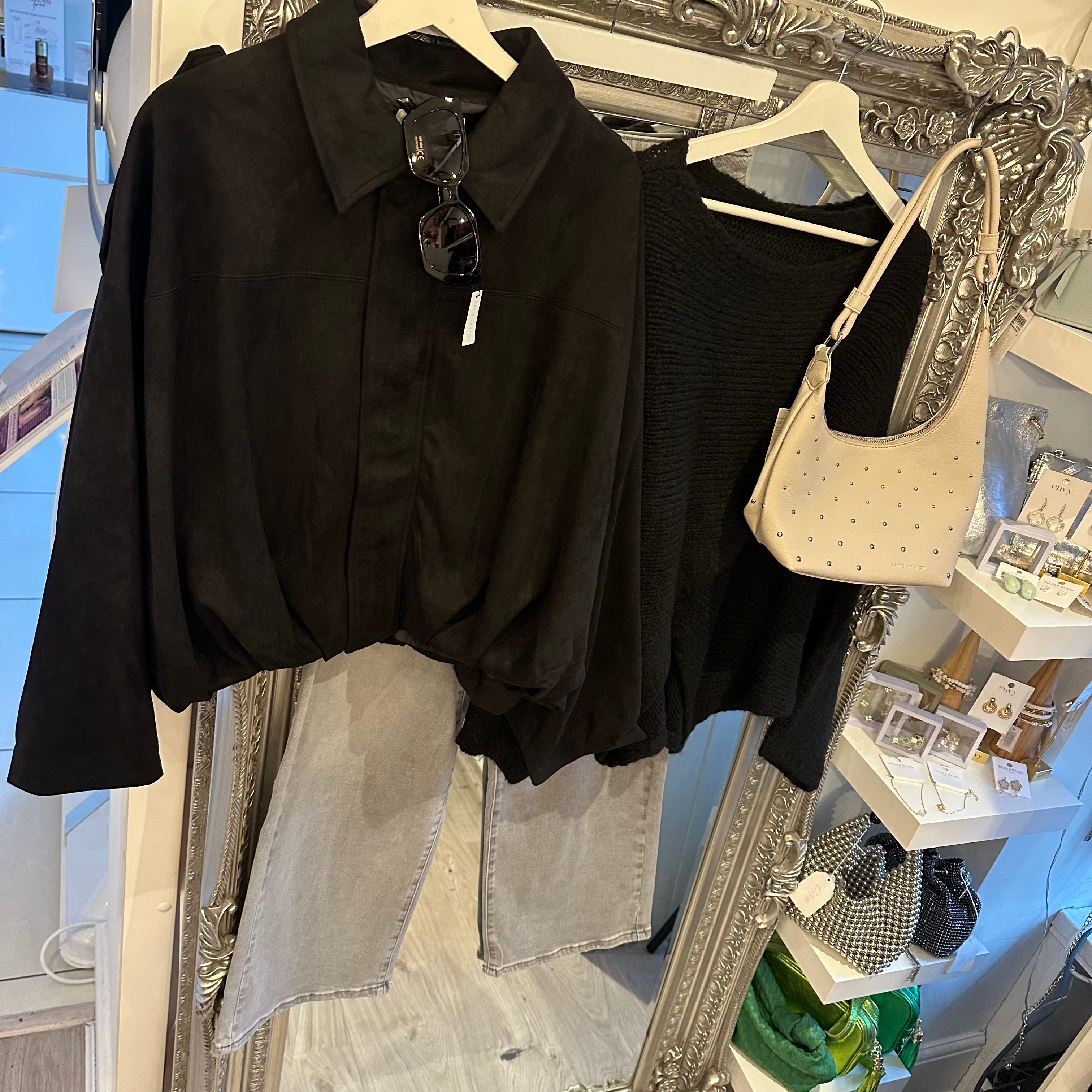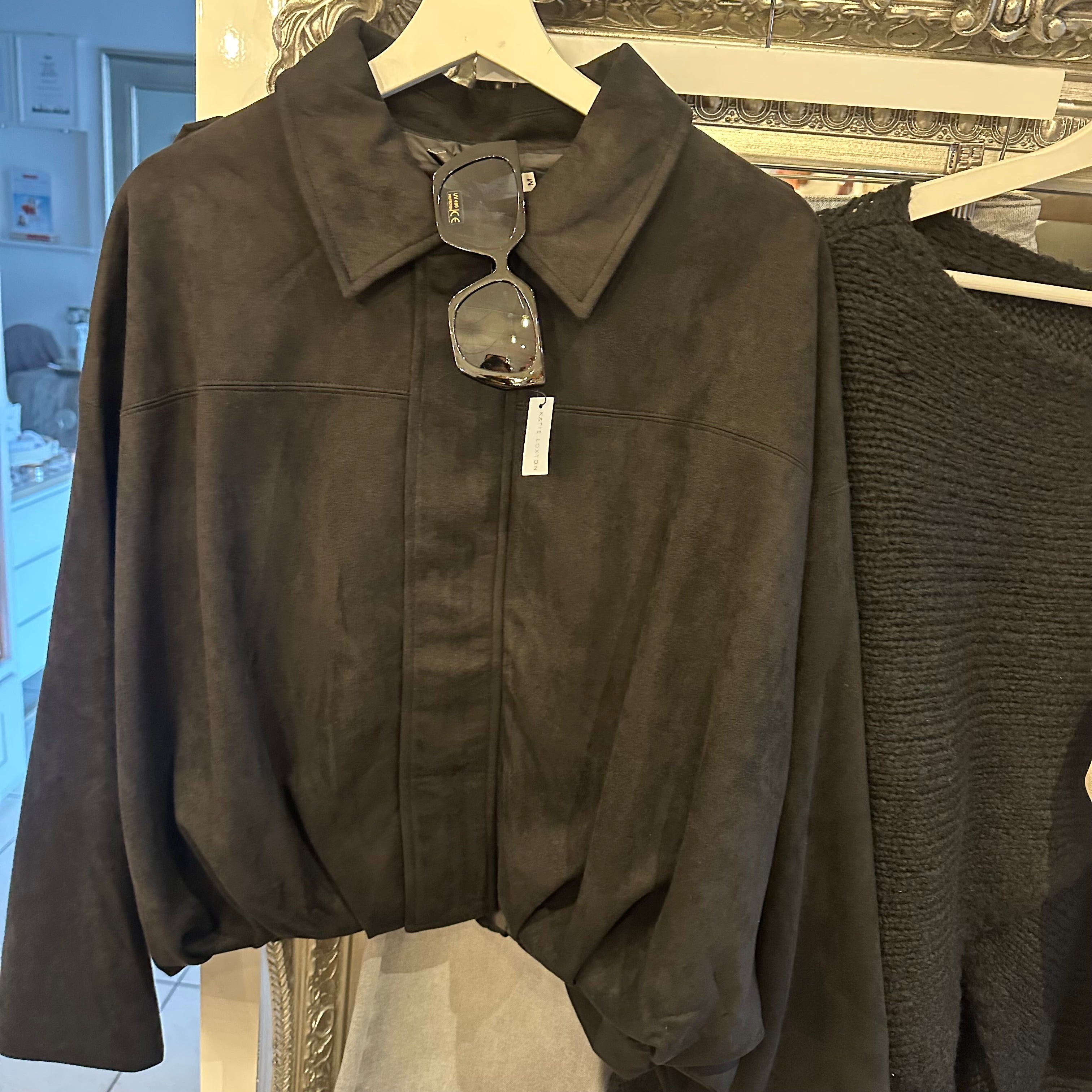 Oversized black faux suede jacket