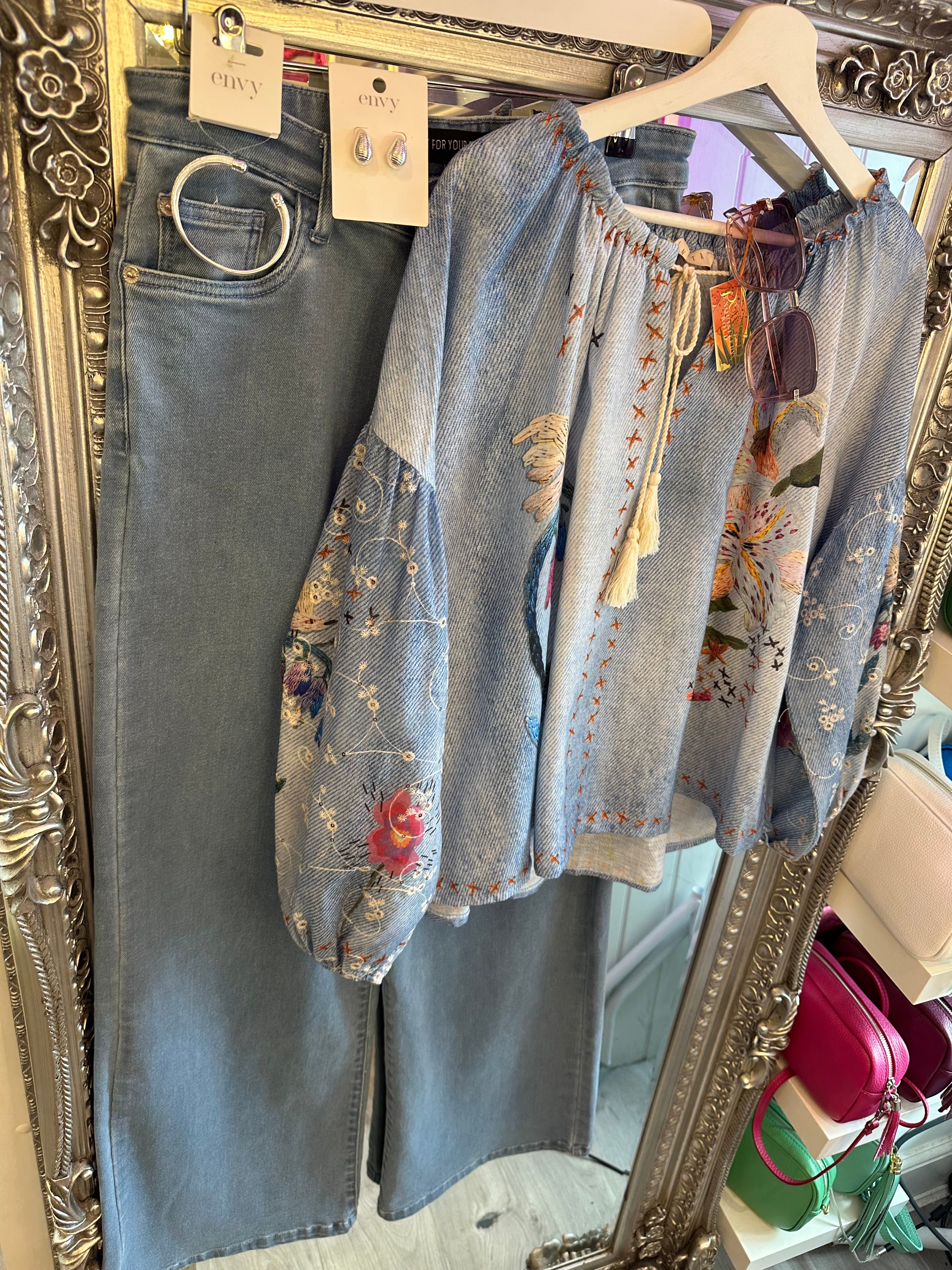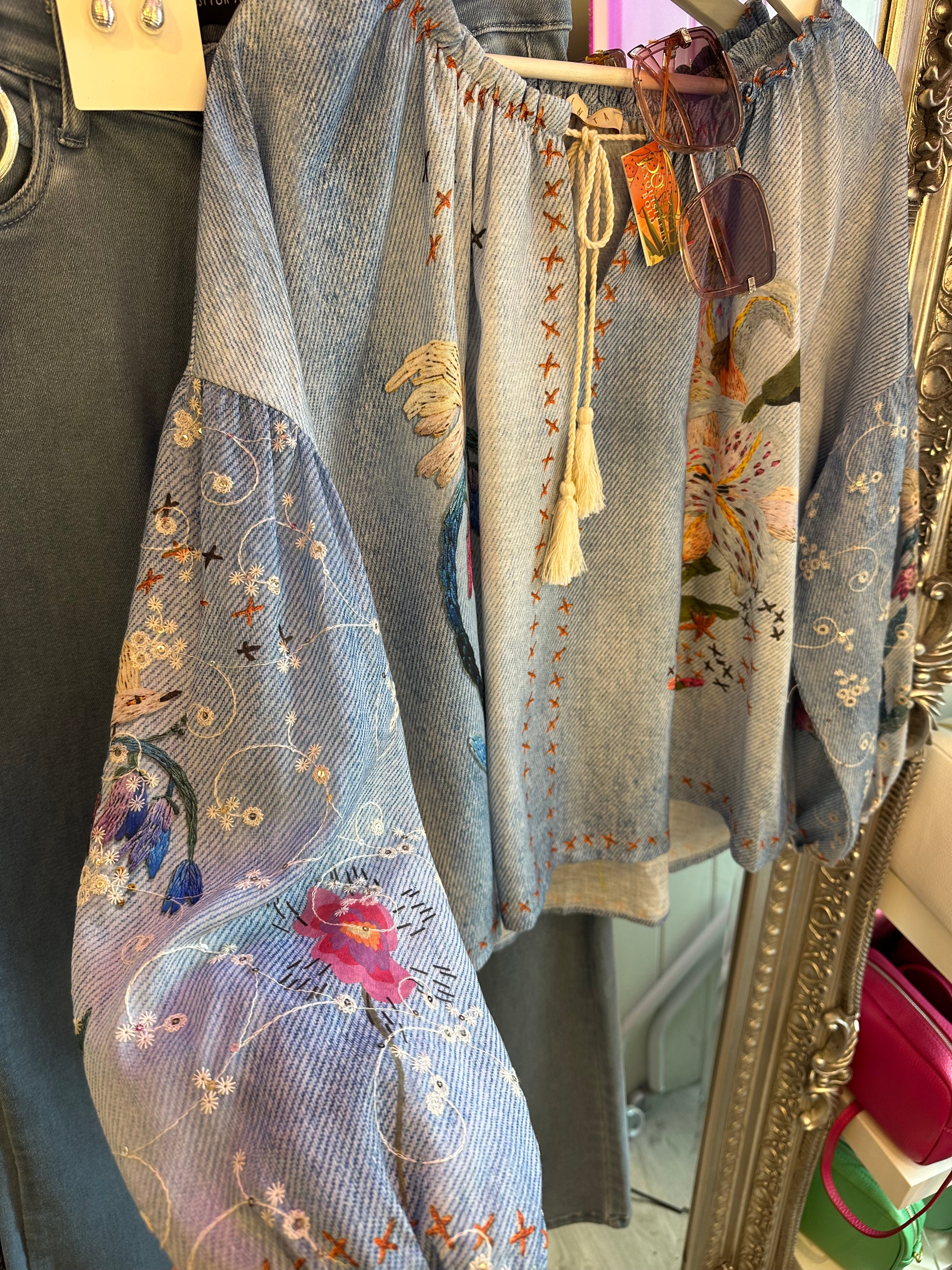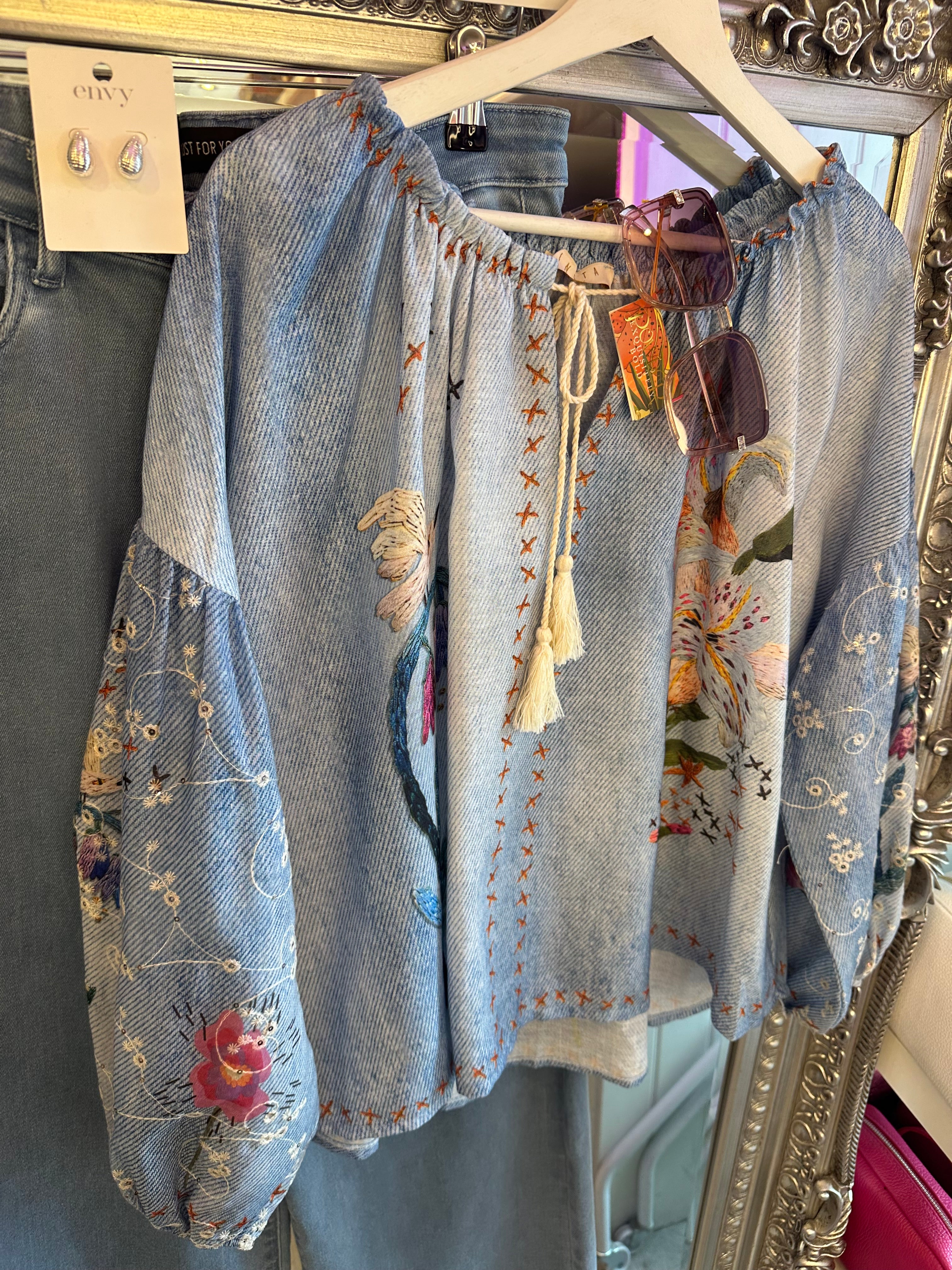 Gorgeous Bardot Floral Print Blouse, featuring embroidery and sequins.
