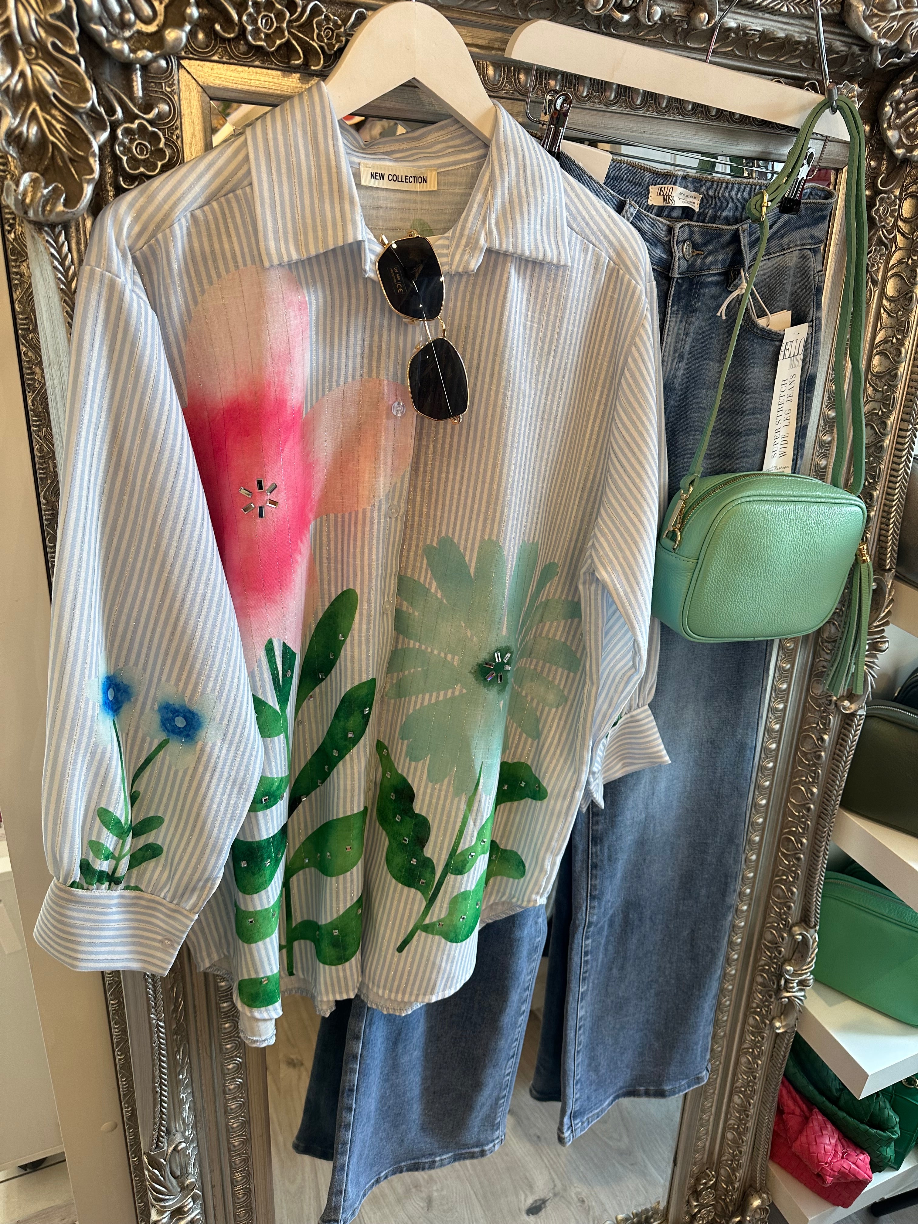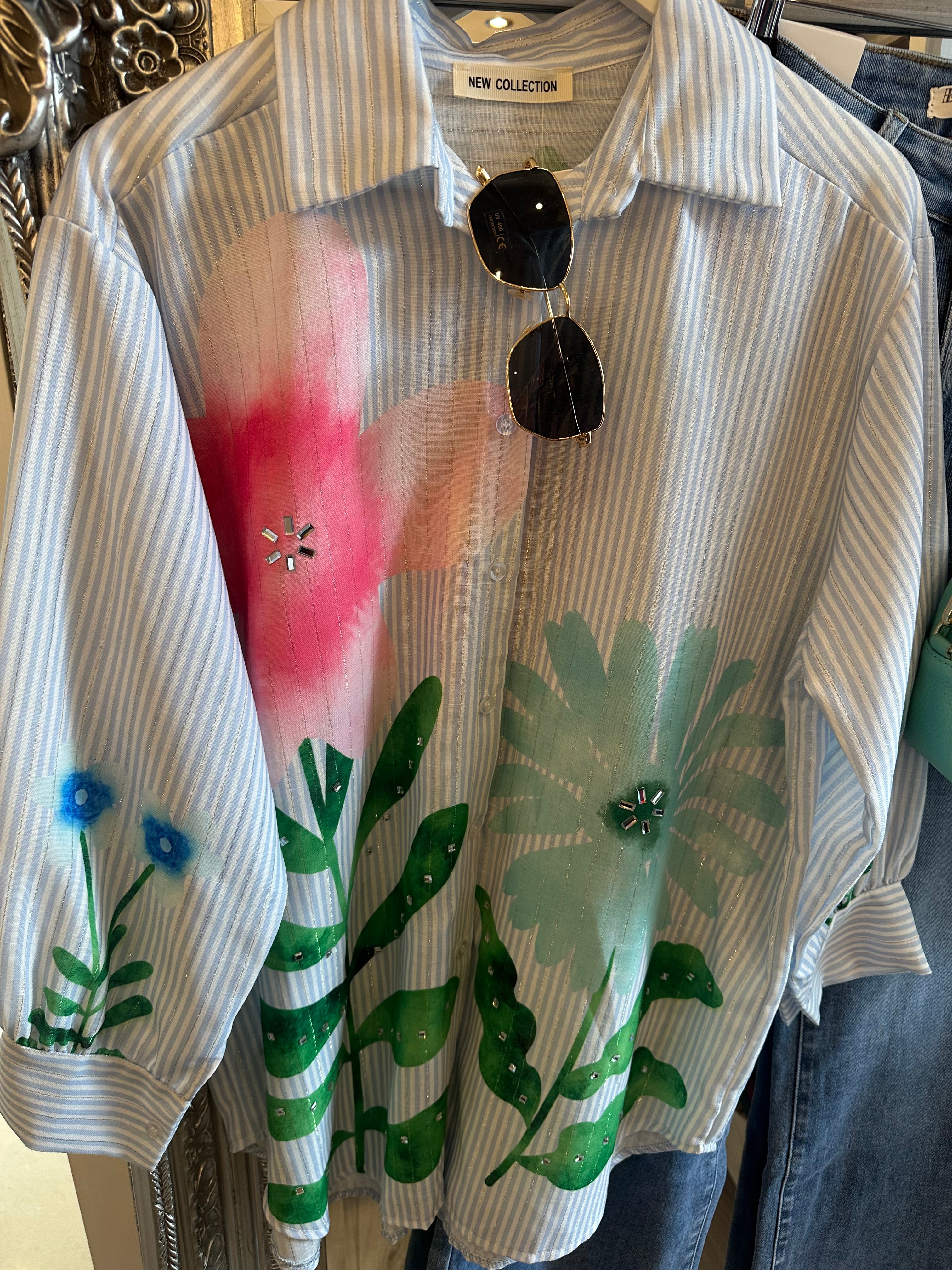 Floral foil pinstripe diamanté blouse
