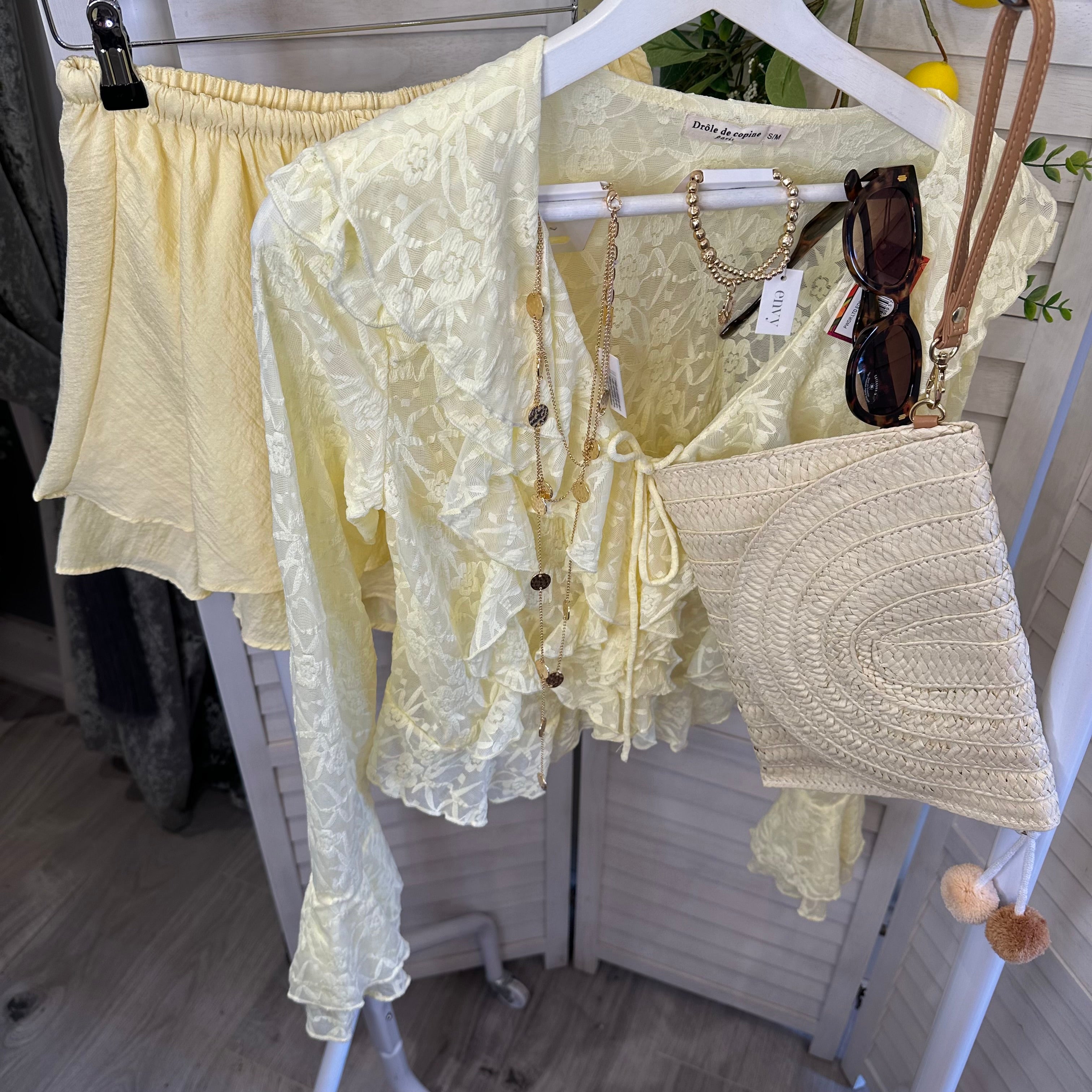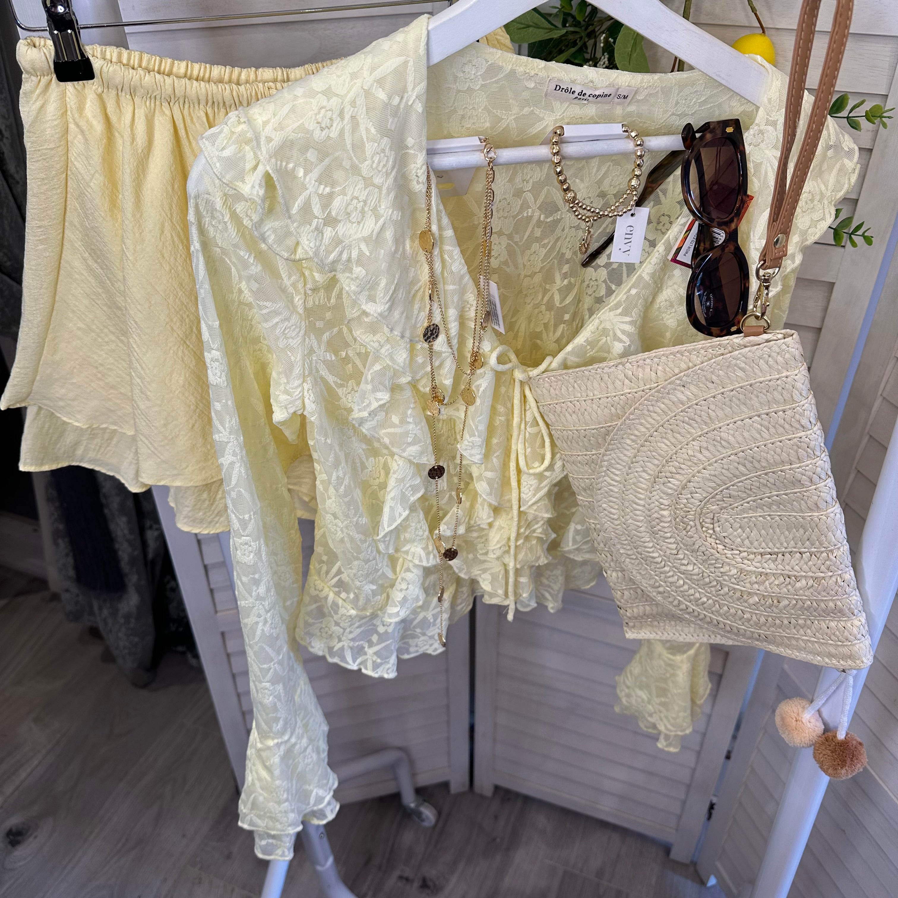 Lemon lace frill top