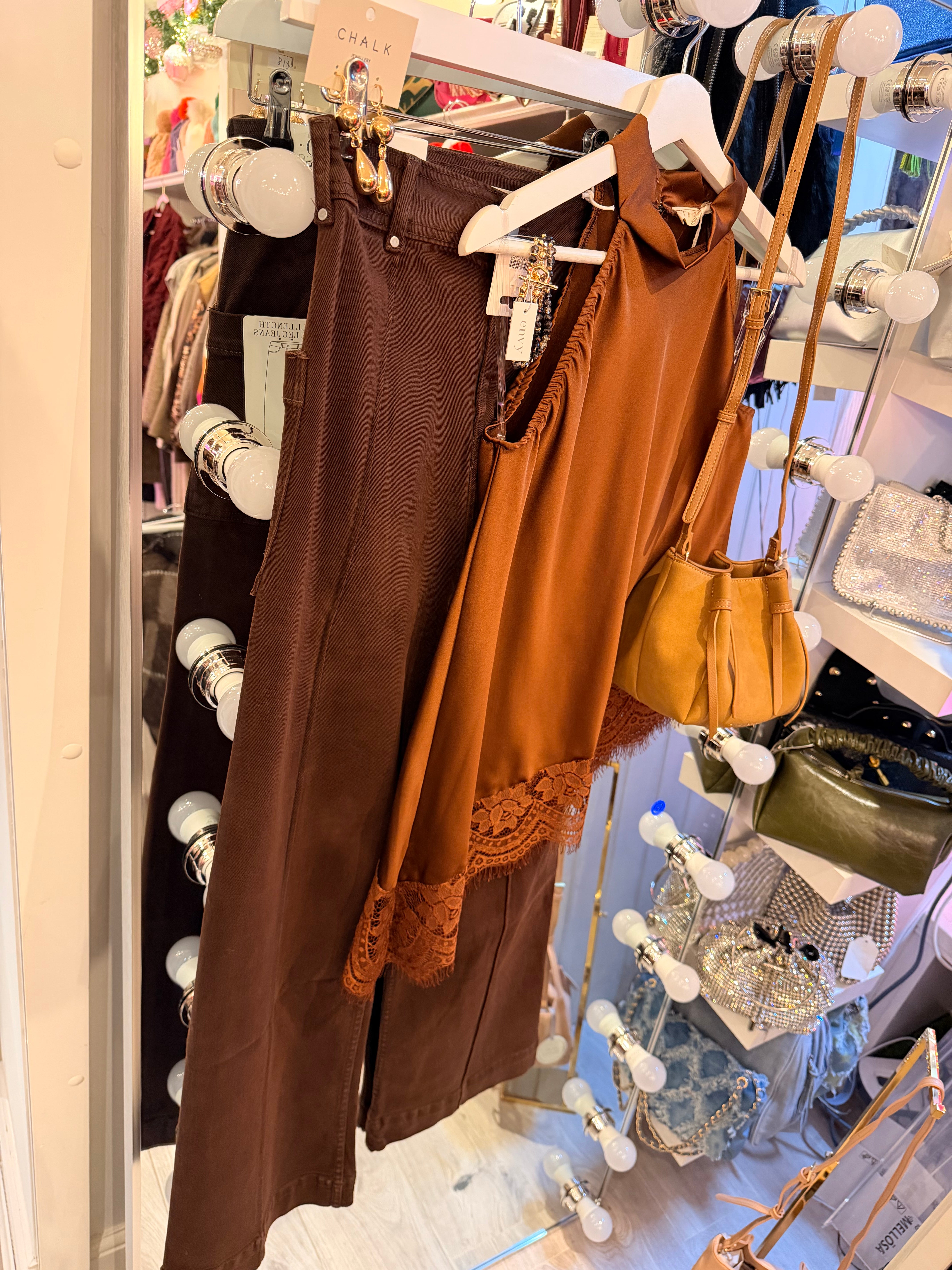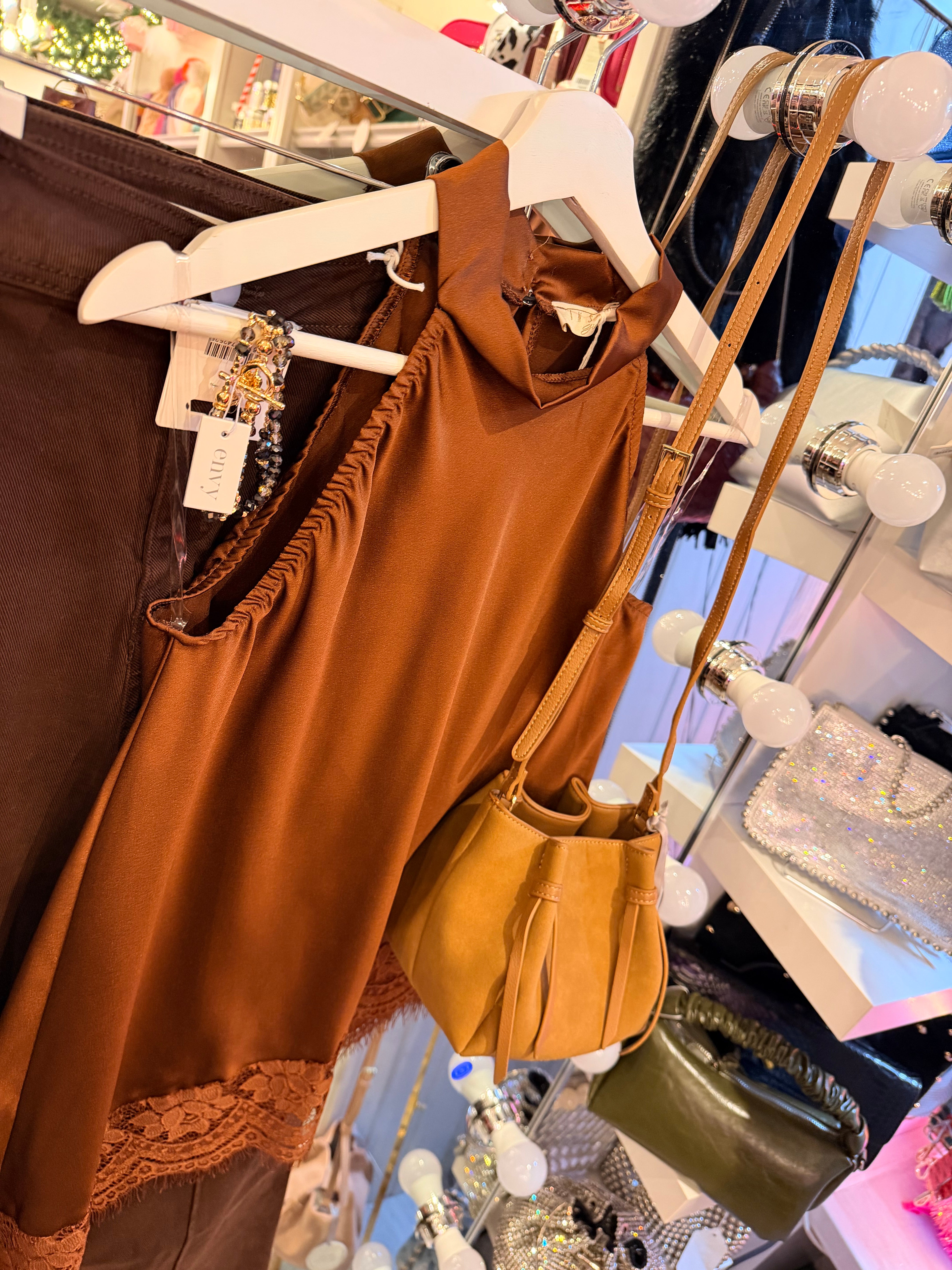 Silky lace top - Brown