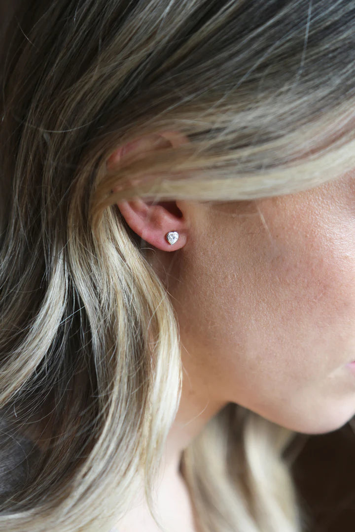 Extra-small stud earrings, designed to a classic heart shape with a touch of extra sparkle.