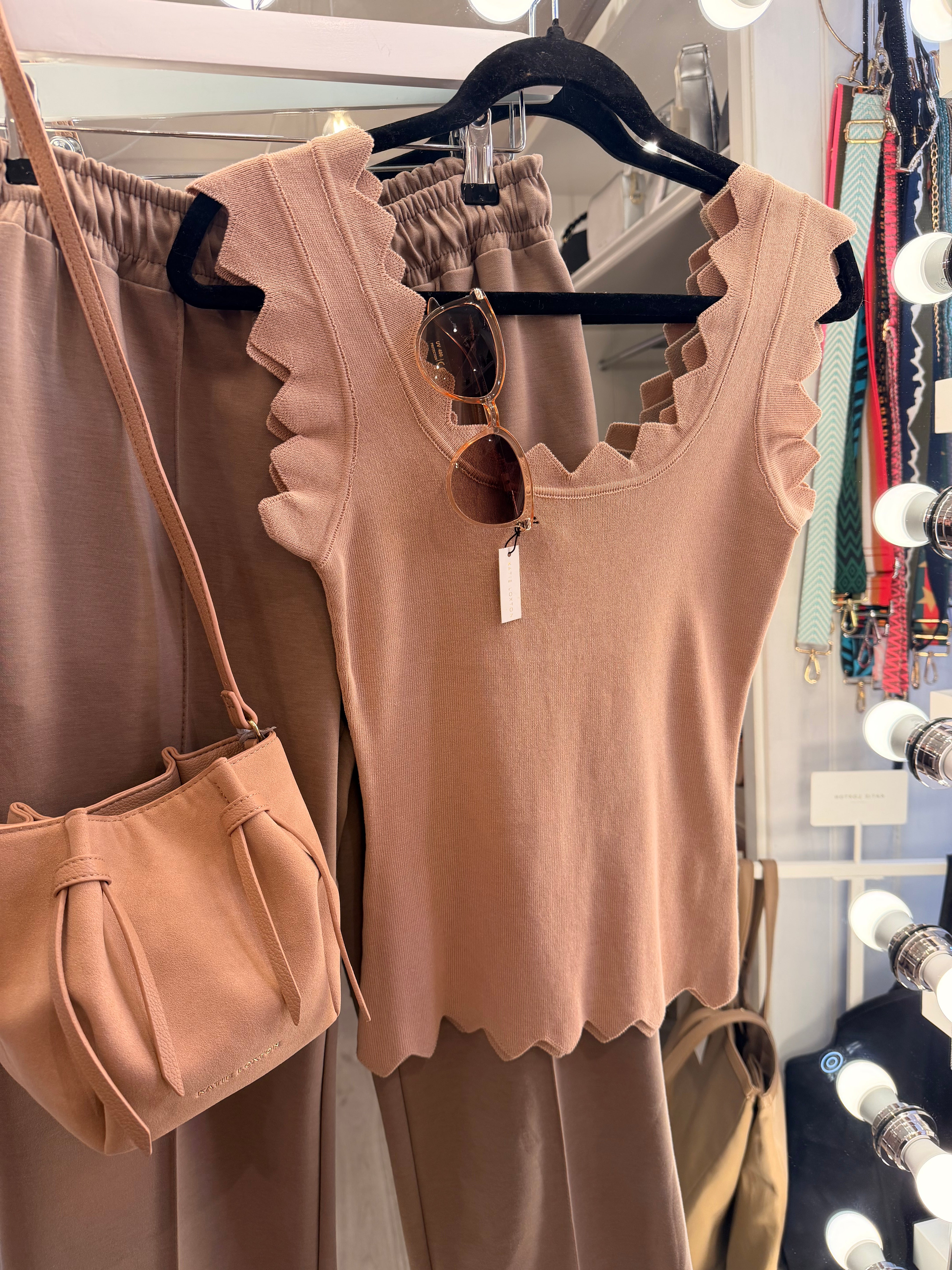 Mocha fine knit scallop top