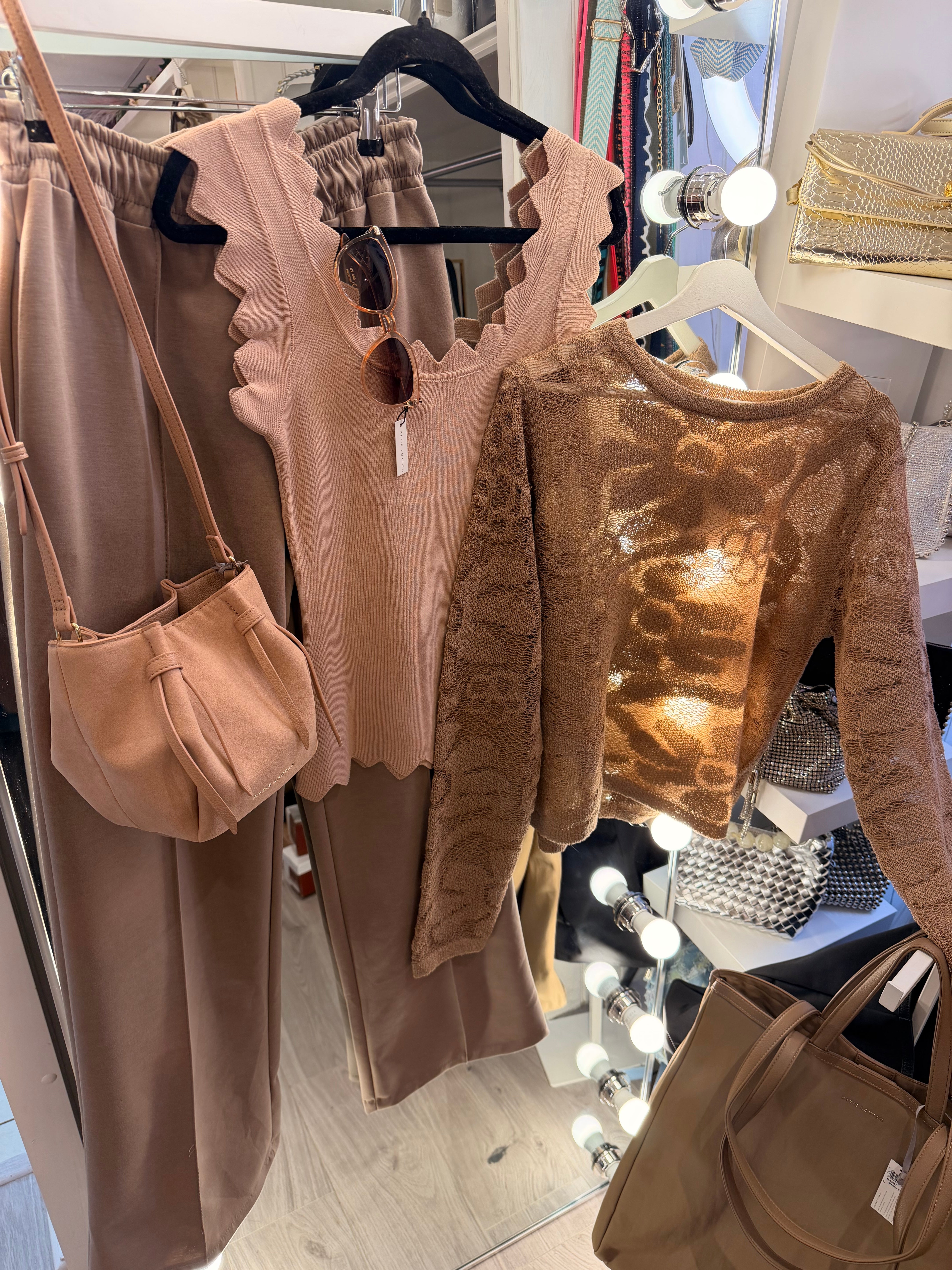 Mocha fine knit scallop top - S/m
