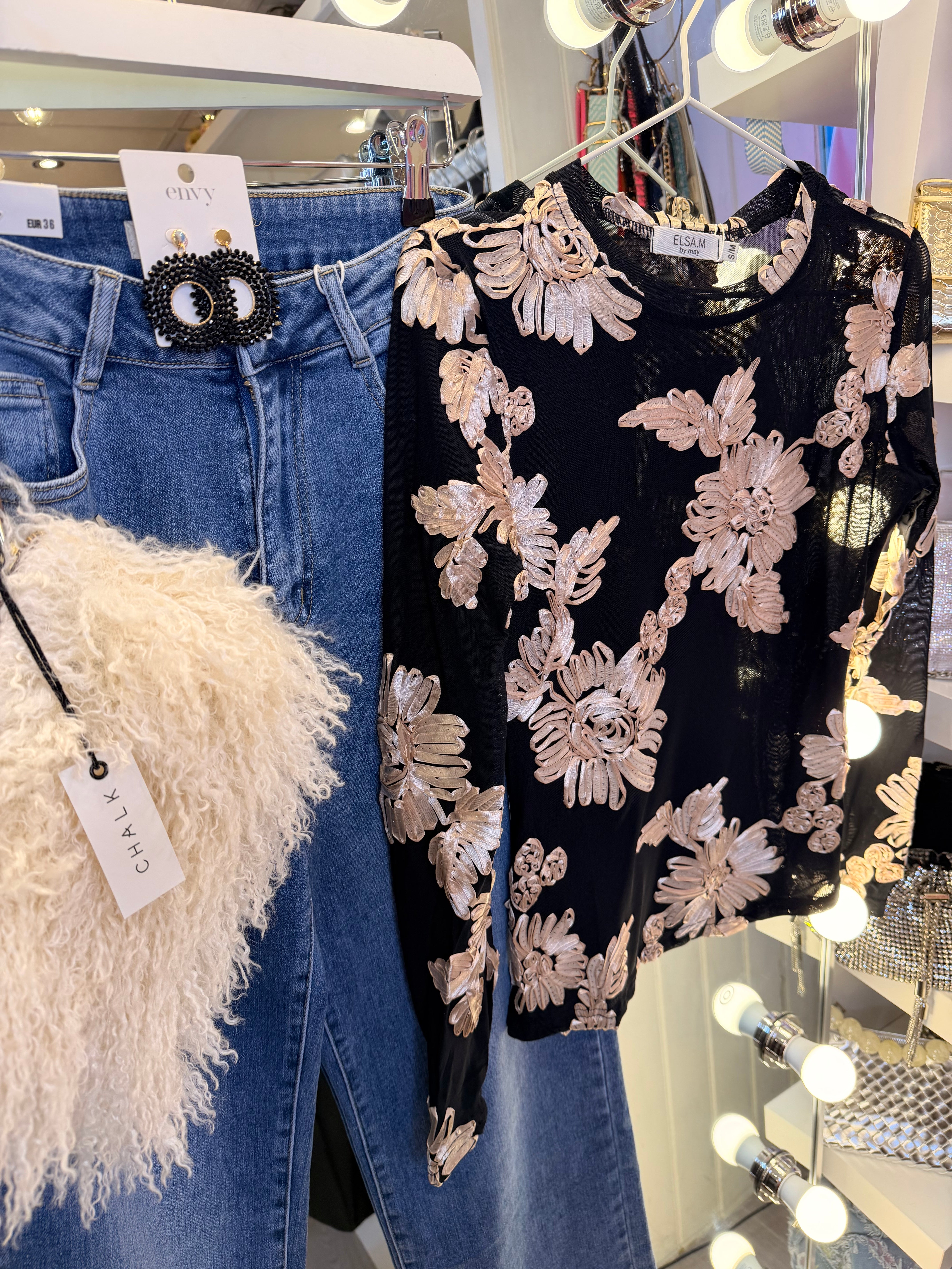 Two tone floral mesh blouse