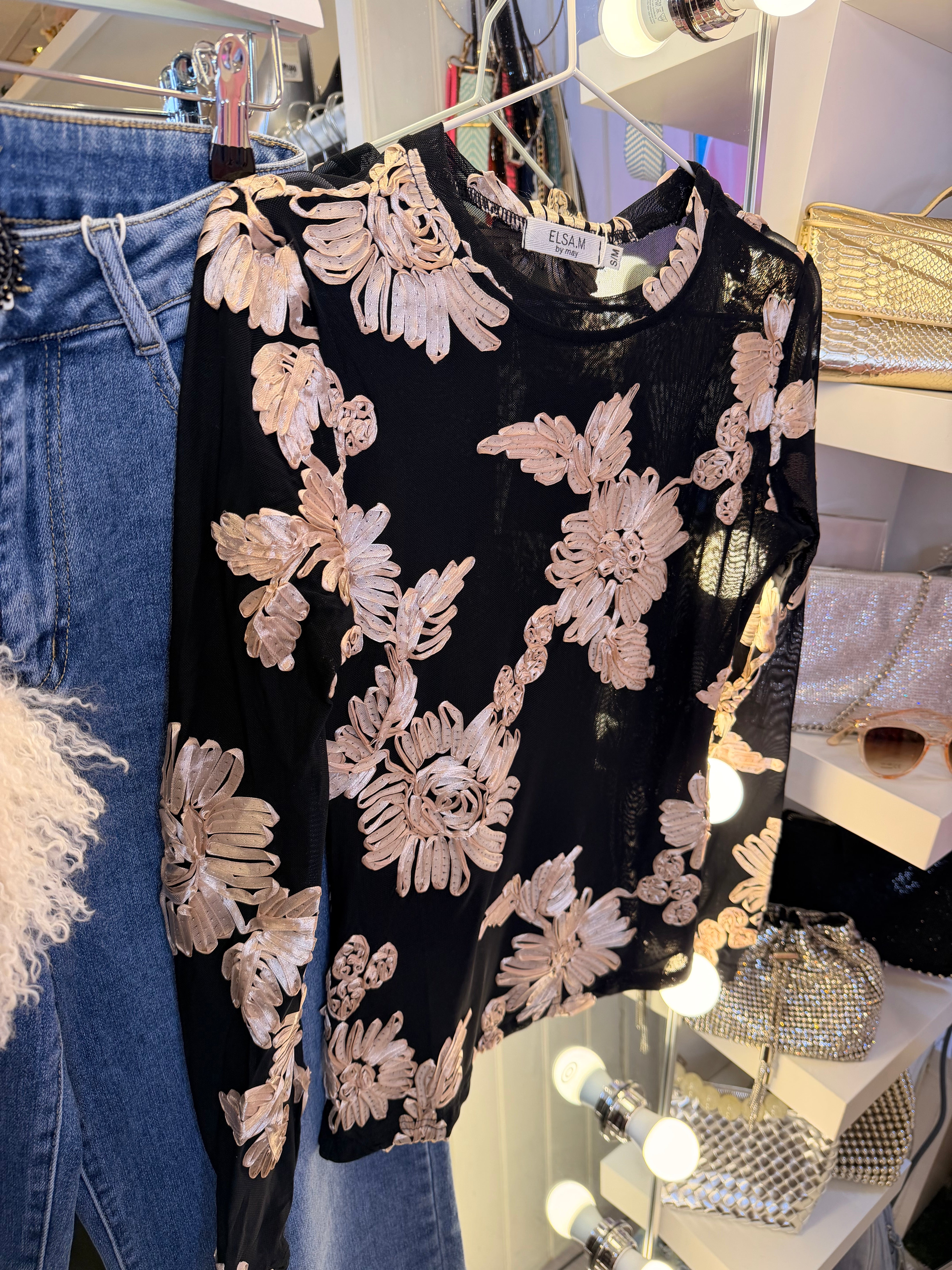 Two tone floral mesh blouse - S/m