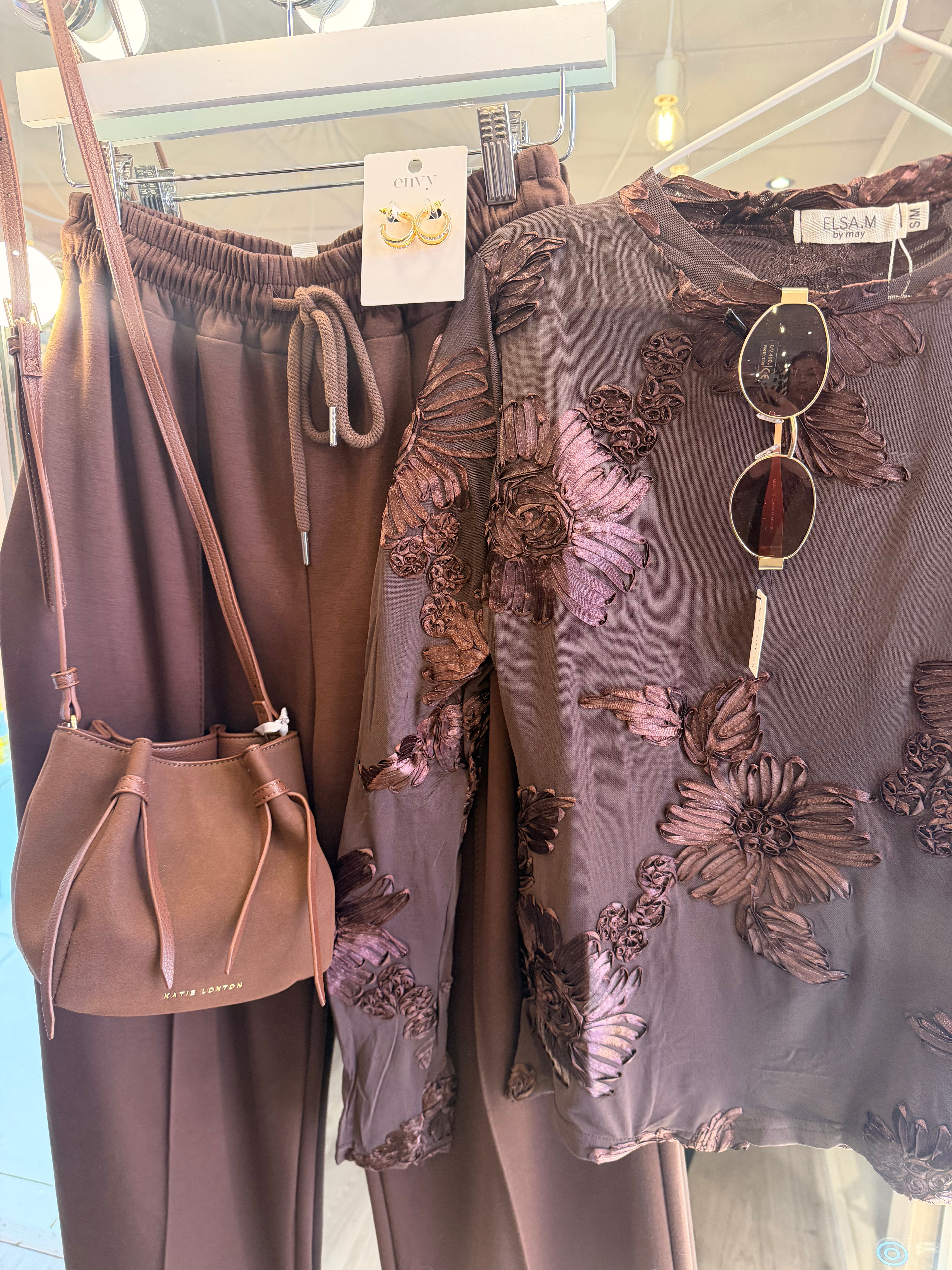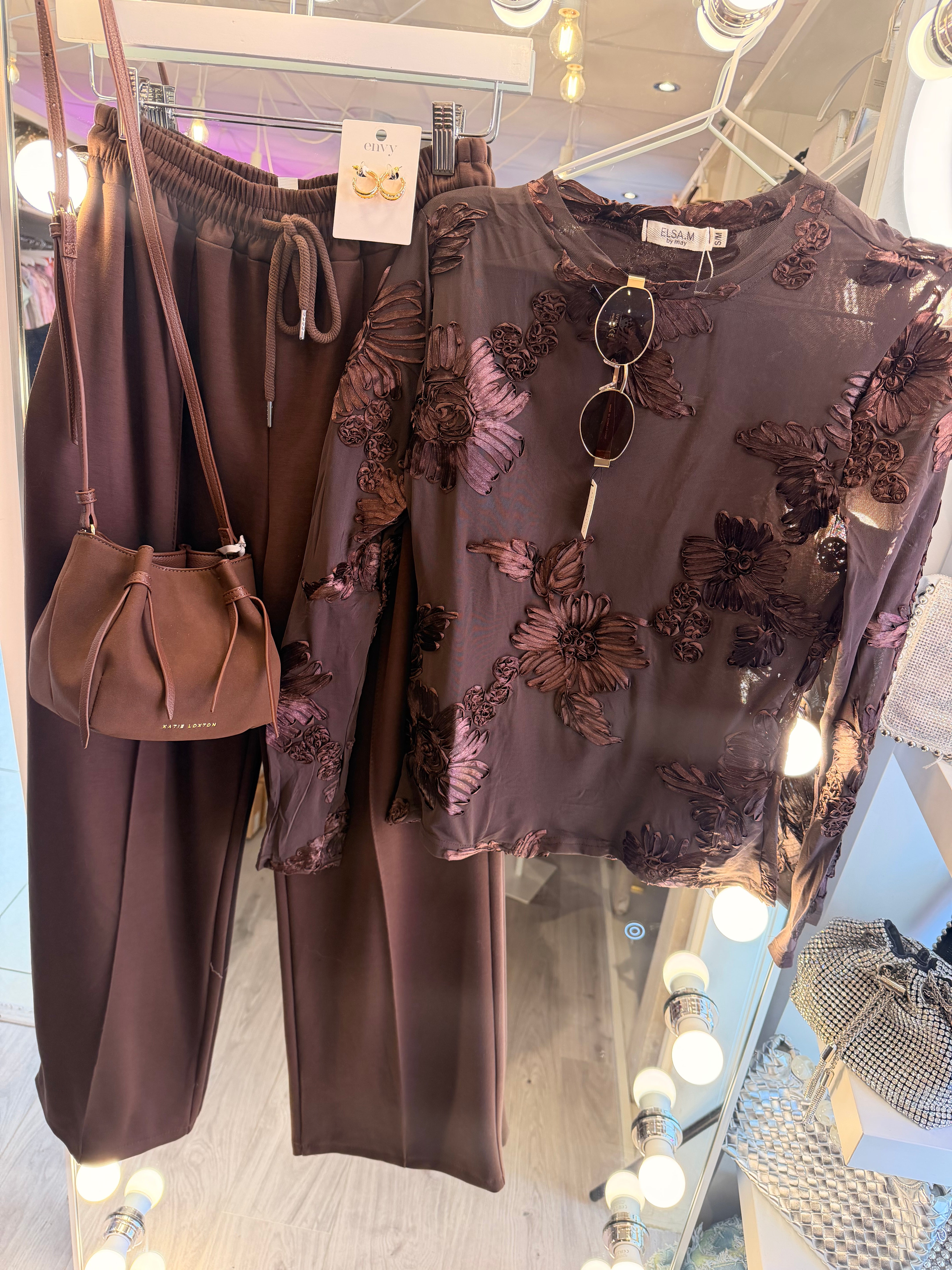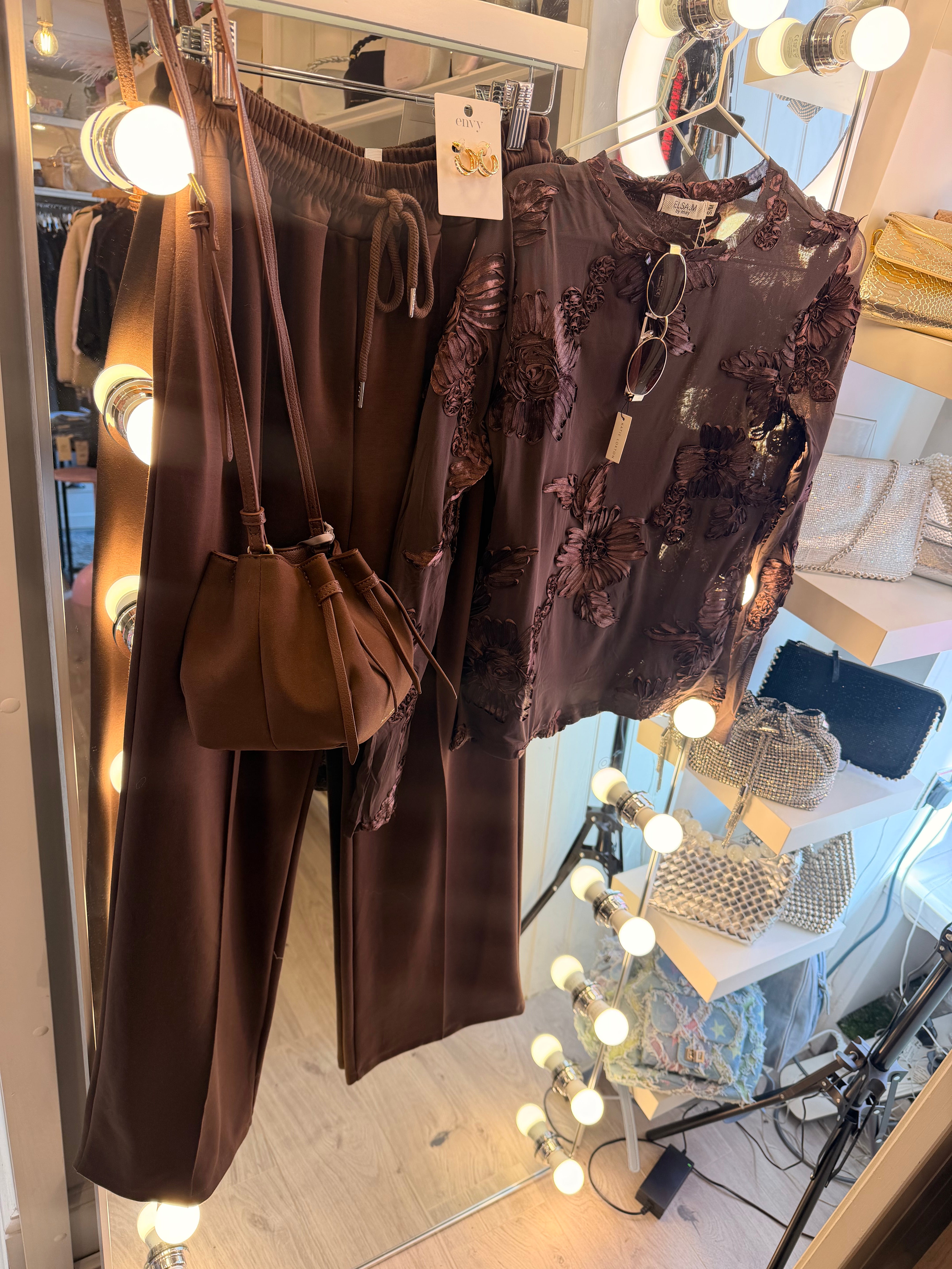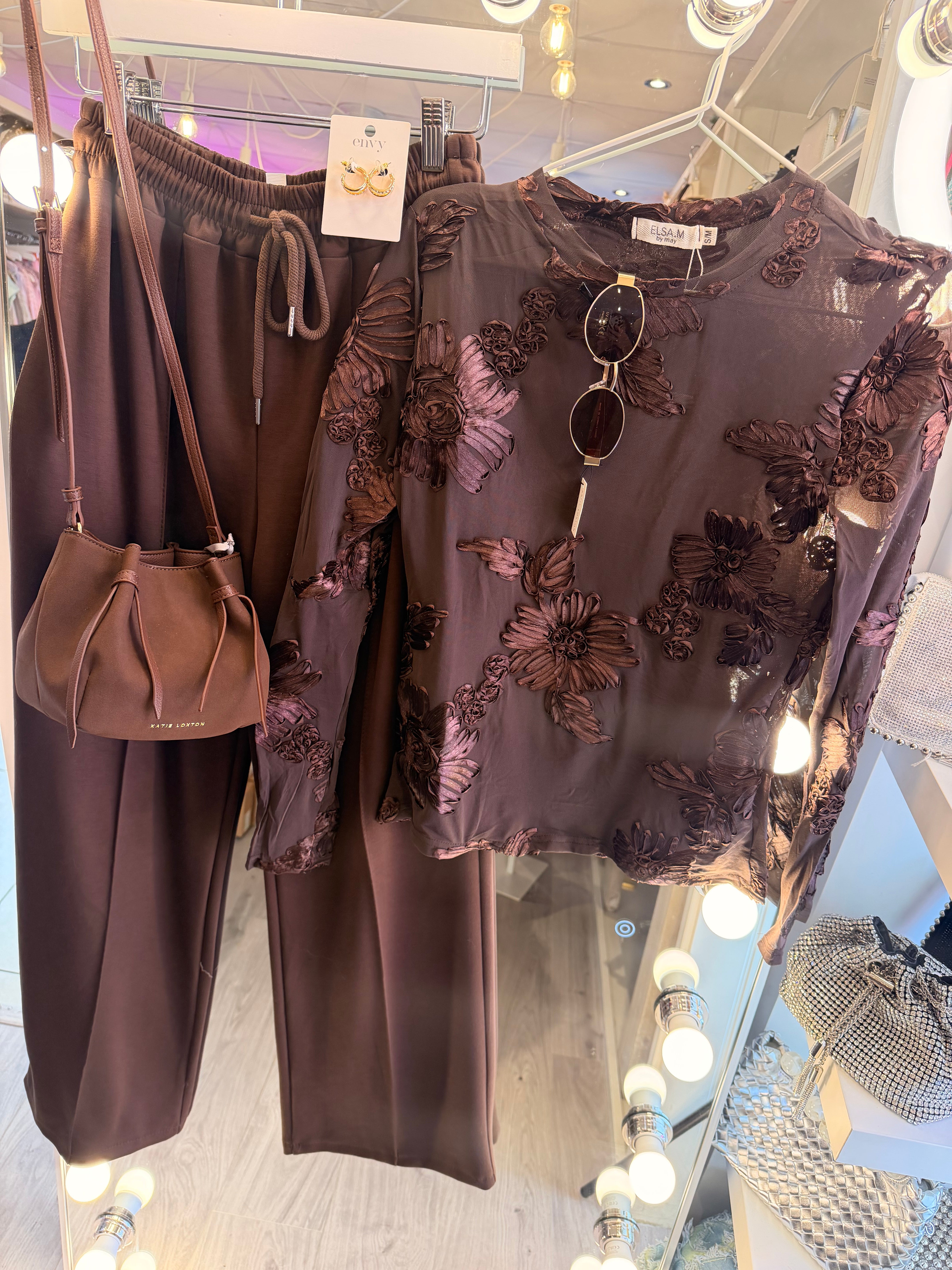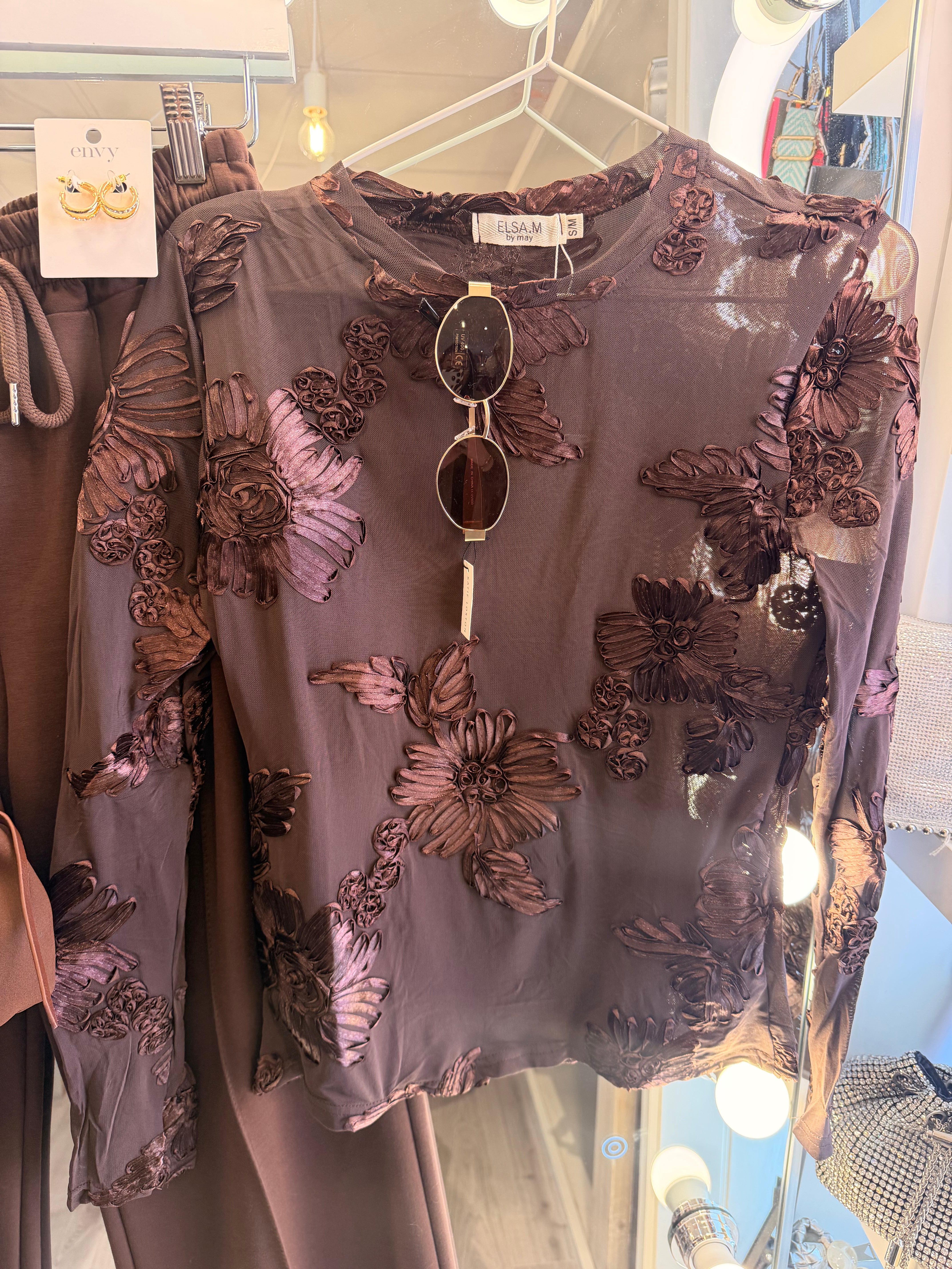 Chocolate brown floral mesh top
